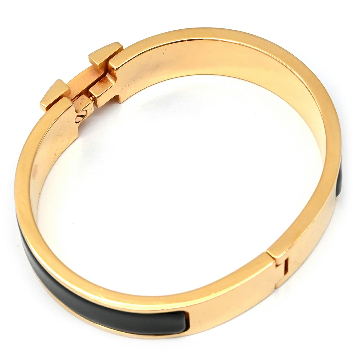 ▲クリックで拡大されますエルメス HERMES クリックH PM クリックH ブレスレット GP エナメル ブラック×ゴールド Hブレス - レディース 【中古】