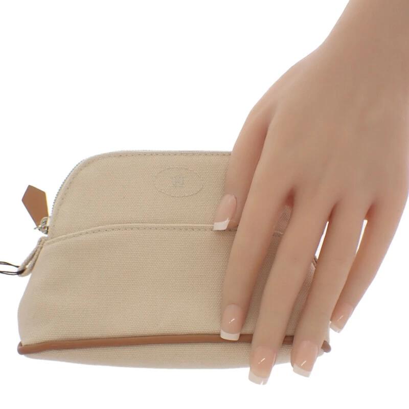 ナチュラルカラーのキャンバス生地に、裏地の鮮やかなオレンジがアクセントとして映える、エルメスらしい上品なデザインが魅力です。軽量で柔らかなキャンバス素材は使いやすく、コスメやカード、薬など、日々の小物をスマートにまとめられる機能性も兼ね備えた万能アイテムです。