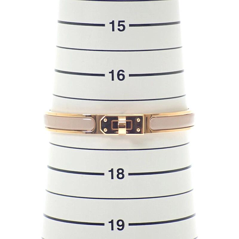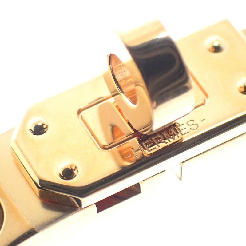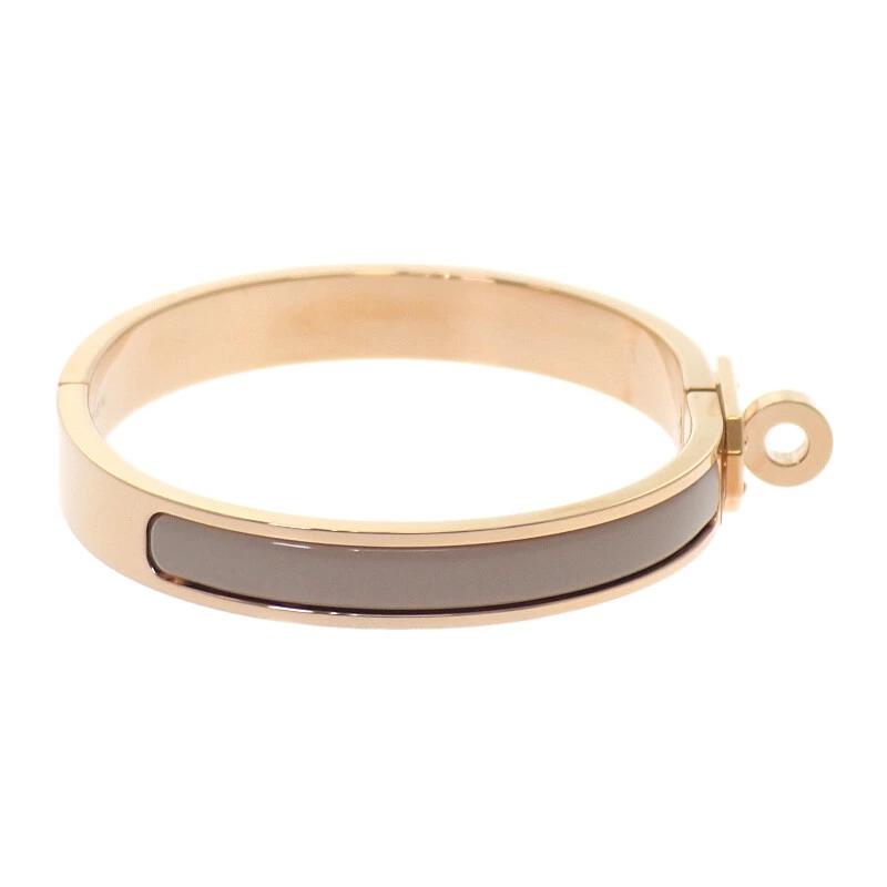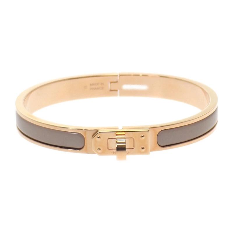 エルメスを象徴する「ケリーバッグ」の留め金をモチーフにした、人気のクリックシリーズのミニモデルです。上品なマロングラッセの色調と、華やかなゴールド金具が手元に洗練された輝きを添えます。細身のフォルムは主張しすぎず、他のアクセサリーとの重ね付けにも適したバランス。エルメスらしいエレガンスと実用性を兼ね備えた、アイコニックなバングルです。
