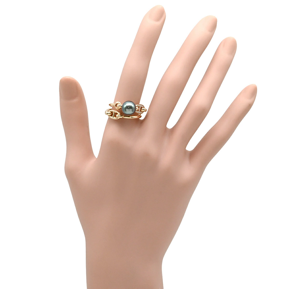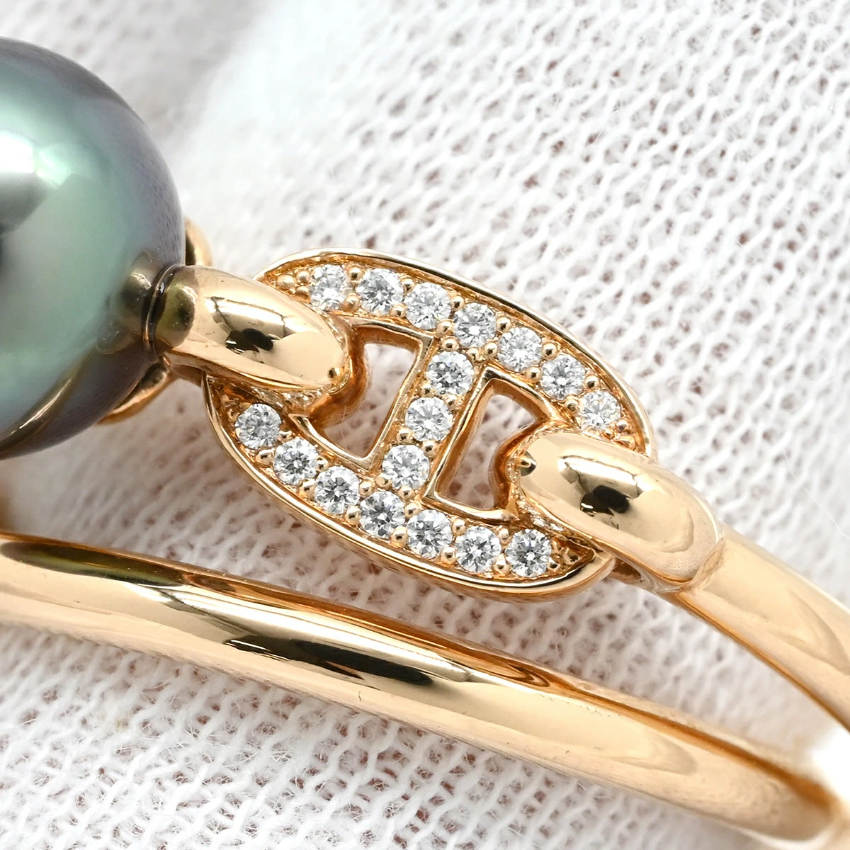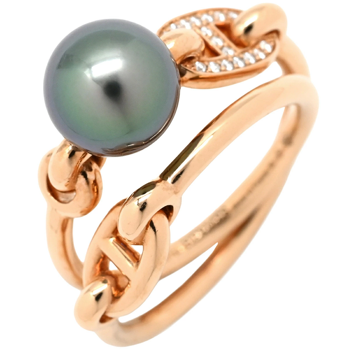 ▲クリックで拡大されますエルメス HERMES アルバーティン シェーヌダンクル ブラックパール ダイヤモンド アルバーティン リング 指輪 K18PG ダイヤモンド ブラックパール ピンクゴールド ピンクゴールド 750 シャンドラ - レディース 【箱】定番 人気 美品 【中古】