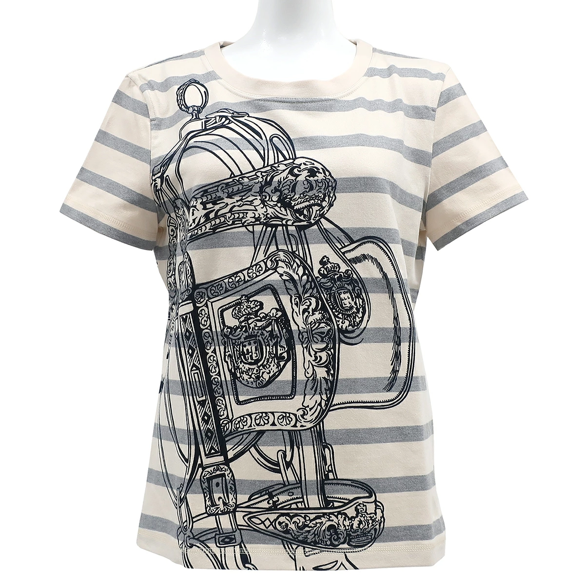 エルメス HERMES ストレートTシャツ 半袖Tシャツ コットン アイボリー×グレー×ブラック 【BRIDES de GALA/ブリッド ドゥ ガラ】 - レディース定番 人気 美品 【中古】