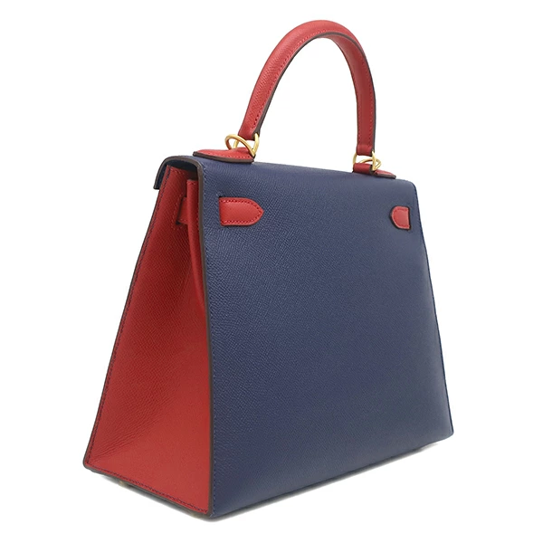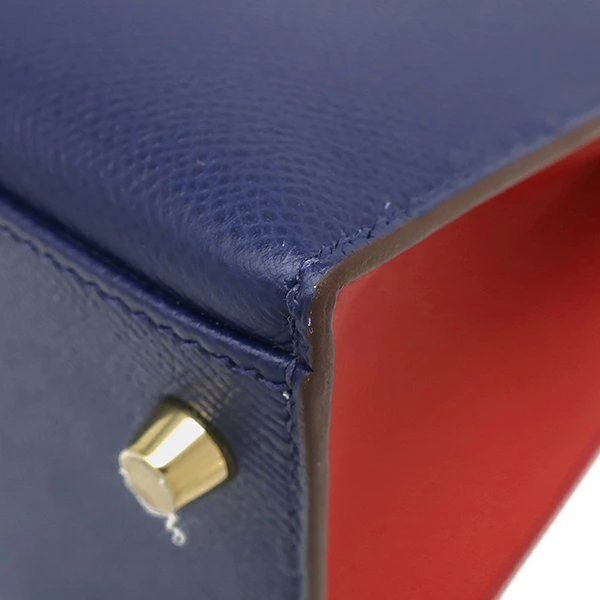 ▲クリックで拡大されますエルメス HERMES ケリー28 外縫い ケリー 2WAYバッグ ヴォーエプソン ブルーサフィール×ルージュカザック 【PO品】 ハンドバッグ ショルダー ゴールド金具 D - レディース定番 人気 美品 【中古】