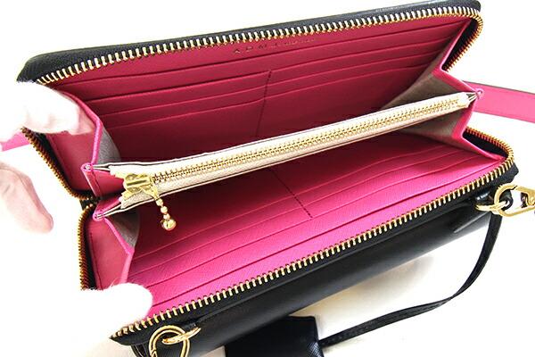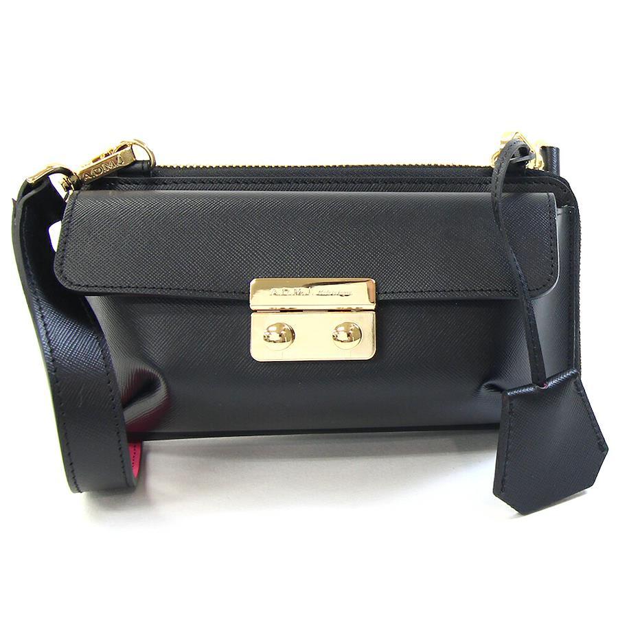エーディーエムジェイショルダーウォレットブラックピンクレザー中古斜め掛けショルダーバッグ財布ポシェットミニバッグレディースA.D.M.J.