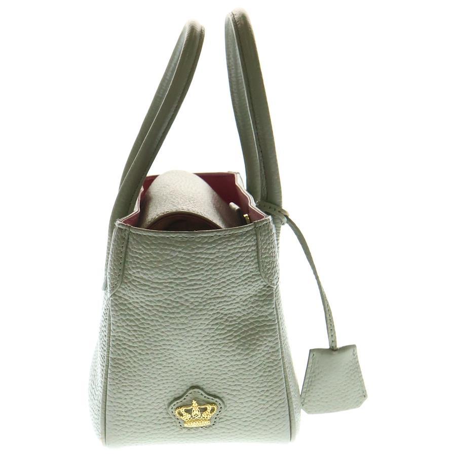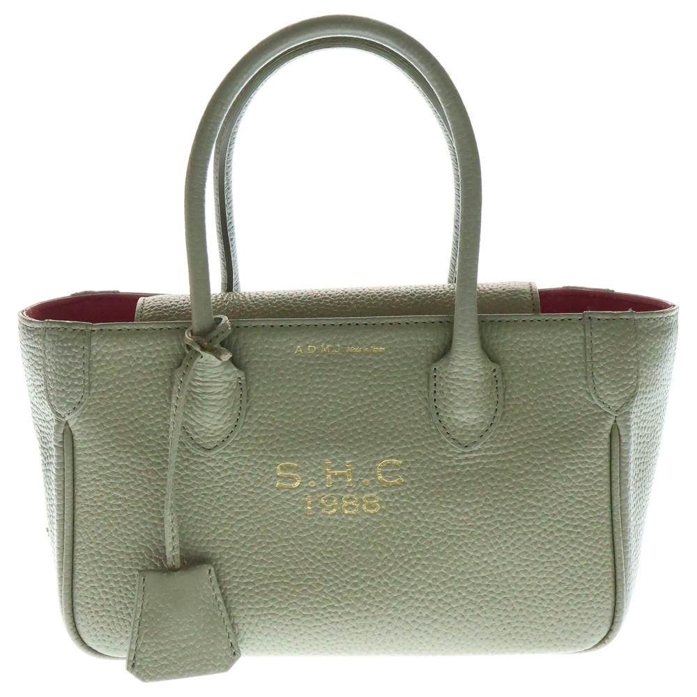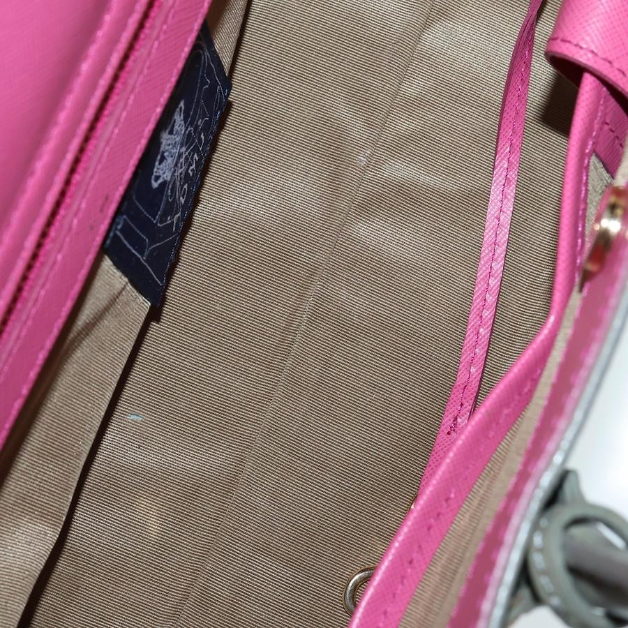 [モデル]ロゴプリント レザー ハンドバッグ グレー/ピンク 〇