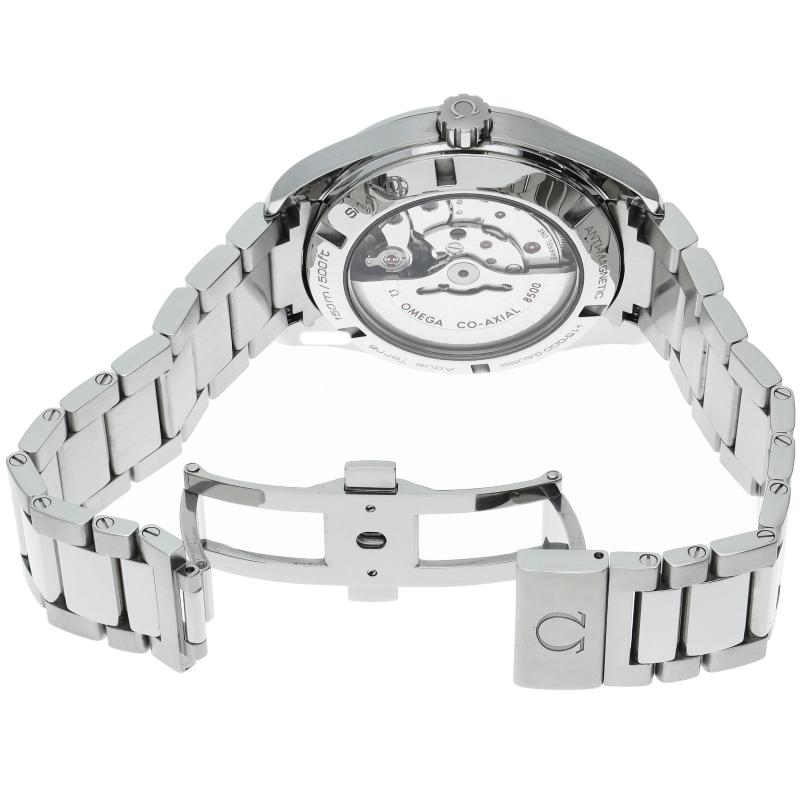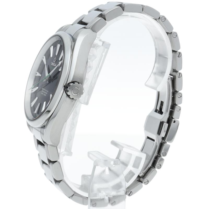 商品説明:防水時計の代名詞オメガ・シーマスターに属する、スタンダード・コレクションが「シーマスター アクアテラ」です。スタイリッシュなデザインと革新的なテクノロジーが融合したコレクションです。フリースプラングテンプを採用した、60時間のパワーリザーブを備える、オメガ自社製自動巻きムーブメント・オメガ8500を搭載しています。ケースバックはシースルー仕様となっております。