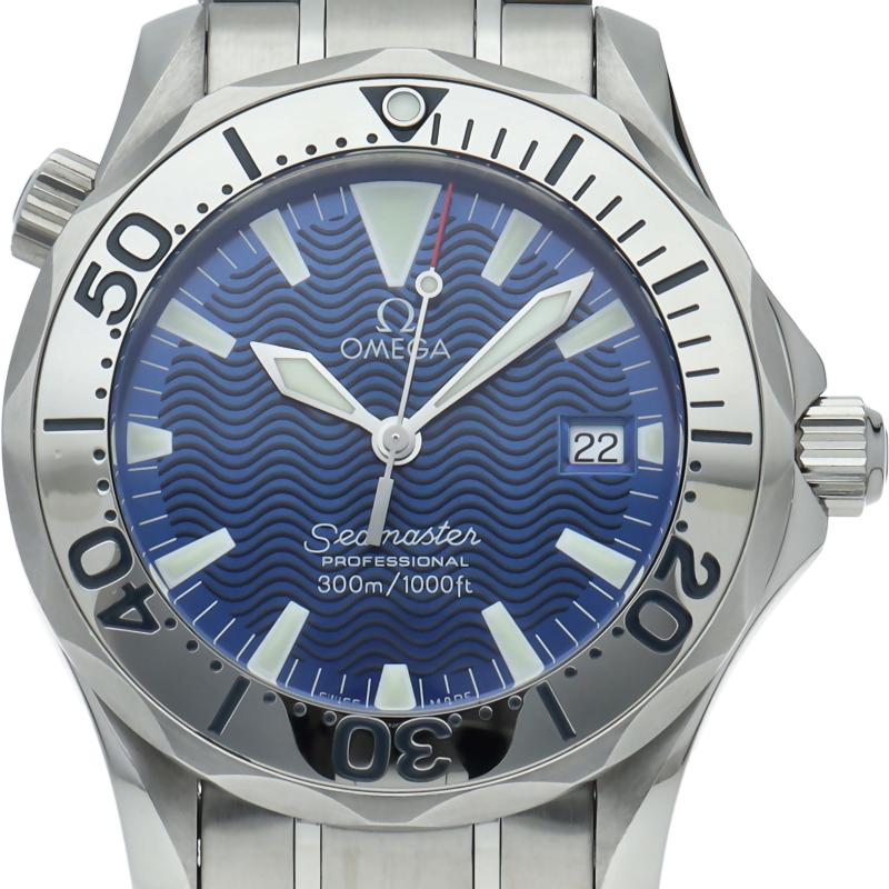 商品説明:オメガを代表する人気ダイバーズウォッチ「シーマスター」。ヘリウムエスケープバルブを備えた本格的な多機能ダイバーズモデル。海を思わせるブルーのダイヤルが素敵です。