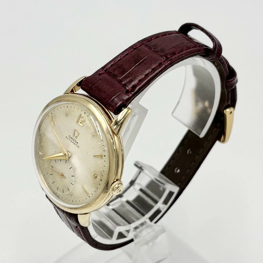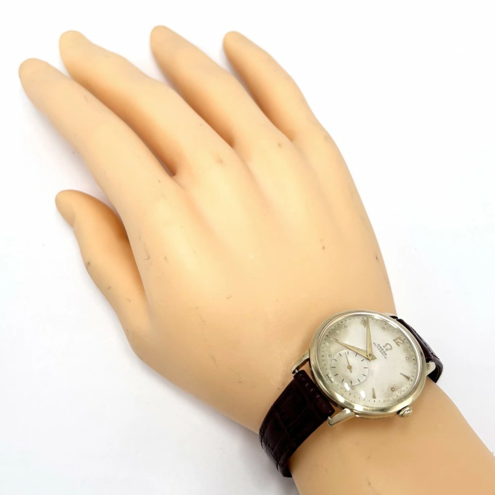 Pre-owned Omega Men's Half Rotor Small Seconds Watch, AT, Silver Dial, OMEGA F6212, Automatic, Stainless Steel, Leather, Silver/Brown, Gold Hardware