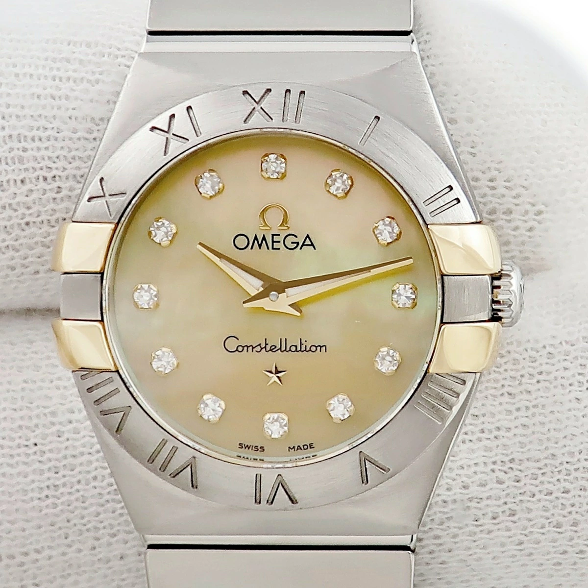 オメガ OMEGA コンステレーション 123.20.24.60.57.002 K18YG×SS コンビ 純正ダイヤ シェル シャンパン レディース 腕時計クオーツ イエロー 【中古】【店頭受取不可】 管理コード240500502731 (ムーブメント点検済 電池交換済) コンディション詳細:中古美品 中古A品(バンドA) (細かなスレ、ガラス面に細かな点キズ、ベゼル/ラグ/ケースサイド/裏蓋に細かな点キズなどは御座いますが、大きなダメージは無く状態の良い綺麗なお品物です。)