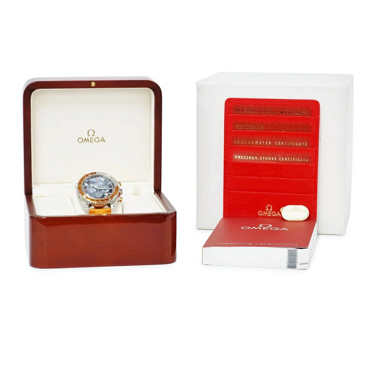 Pre-owned Omega Seamaster Planet Ocean 600 222.28.46.50.57.001, genuine diamonds, orange sapphires, men's automatic watch, blue.