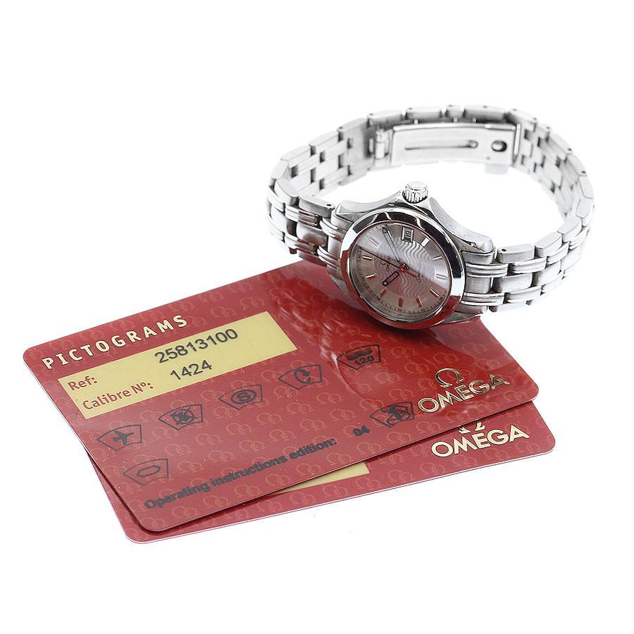 ■商品情報ブランド: オメガ/OMEGAモデル名: シーマスター120対象: レディース素材: SS × SS文字盤色: シルバームーブメント:クォーツRef.No: 2581.31シリアル:58634***機能・特徴:デイト付属品:保証書(カード)ケースサイズ(w):約 25mmベルトサイズ:約 17cm※ベルトサイズとは、ケース部分も含めた総腕回りのサイズになります。ラグ幅: 13mmOH歴: 弊社では実施しておりません。保証書の情報: 未記入