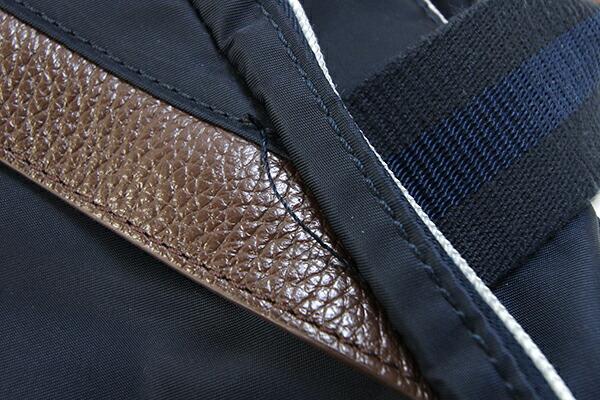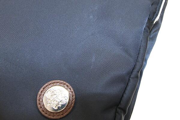 状態 | 外側:ナイロン部分に小キズ、スレ、薄スレ汚れあり。レザー部分所々スレ、フチにコーティング割れあり。正面レザー付け根に糸飛び出しあり。 内側:薄スレあり。 金具:小キズ、スレあり。 |