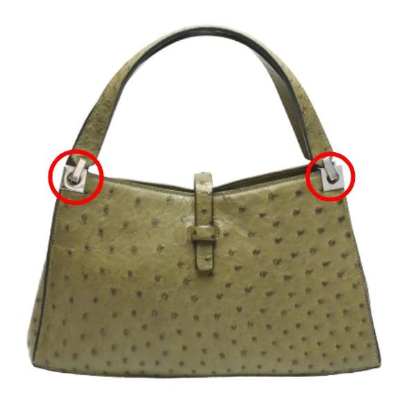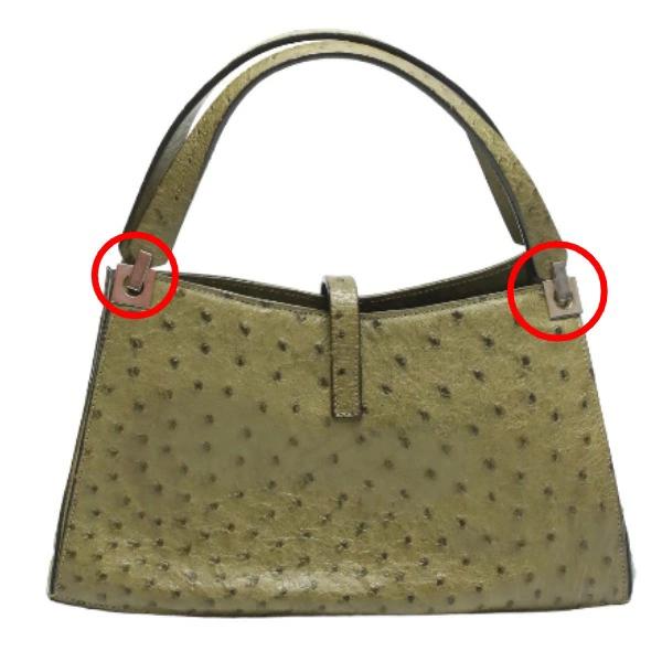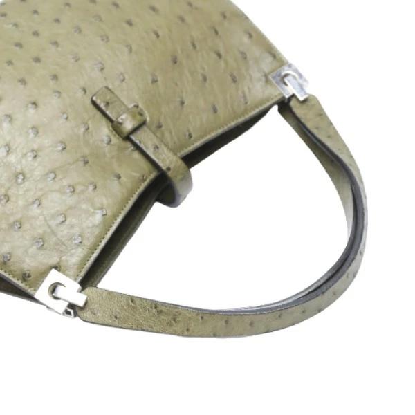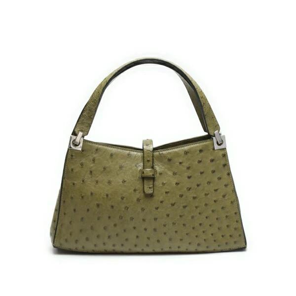 ハンドバッグ オーストリッチ カーキ ハンドバッグ ostrich 【SS】 【中古】