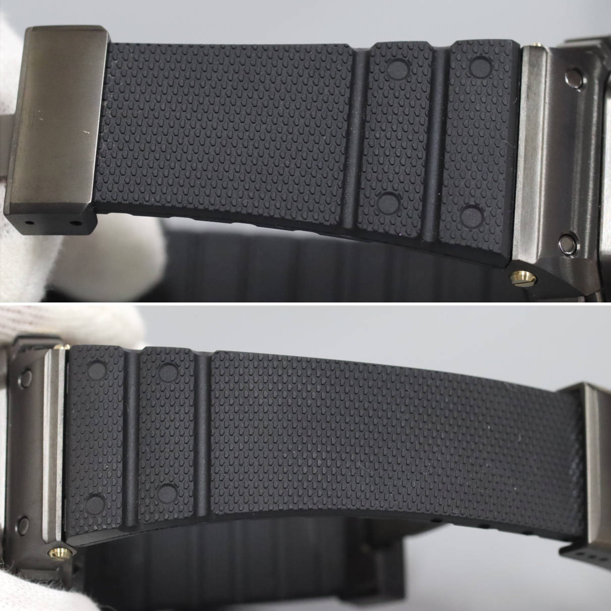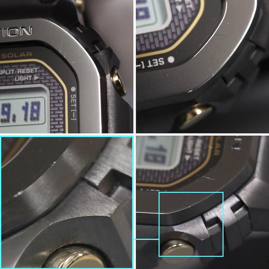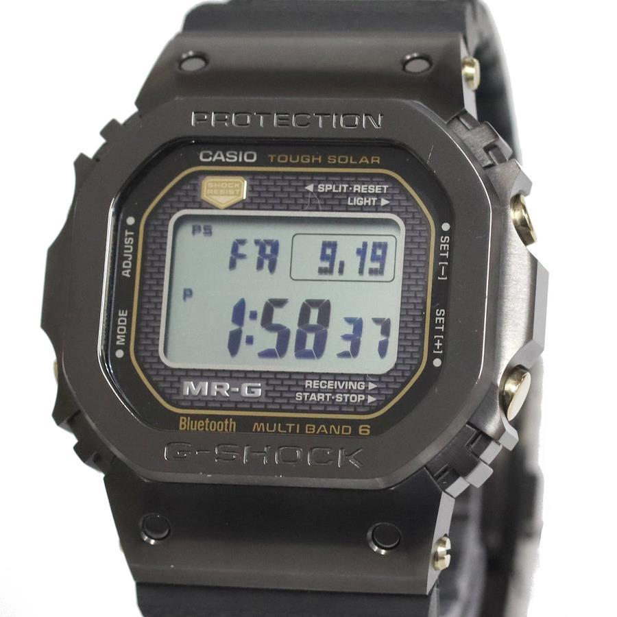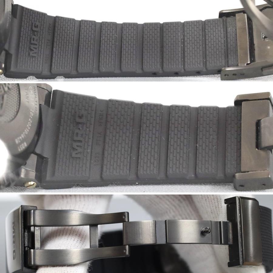 カシオのメンズウォッチ、MR-G B5000シリーズ(MRG-B5000R-1JR)の中古品です。ブラック×ゴールドのカラーがおしゃれです。ベゼルの所々に小傷があります。バックルに小傷があります。ベルトに汚れがあります。保証書が付属し、記載の購入日は2024年5月26日です。付属品は以下の通りです。内外箱(汚れあり)保証書取扱説明書延長保証カード+---+---+---+---+---+。{状態}ケースABベルトA{素材}ケースチタン/コバリオンベルトフッ素ラバー{サイズ} ケース:43.2mm ,ストラップ:約17cm。{ムーブメント}タフソーラー{その他}デジタル表示20気圧防水フルオートカレンダー etc...。{付属品}内外箱,保証書,取扱説明書,延長保証カード{お問合せ商品番号}25096022+---+---+---+---+---+。