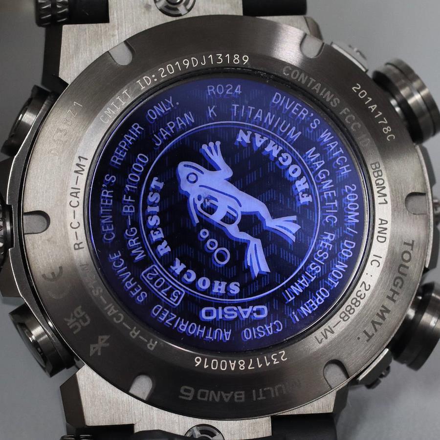 カシオのメンズウォッチ、MR-G FROGMAN(MRG-BF1000R-1AJR)の中古品です。アシンメトリーなデザインが特徴的です。200mの潜水用防水機能を備えた、本格的なダイバーズウォッチです。全体的にきれいな状態で、ケースには特段目立つ傷等ありません。ベルトにはわずかに使用感があります。(写真9枚目)外箱にわずかに汚れがあります。保証書が付属し、記載の購入日は2023年9月10日です。付属品は以下の通りです。内外箱(汚れあり)保証書取扱説明書延長保証カード+---+---+---+---+---+。{状態}ケースAベルトA{素材}ケースチタンベルトフッ素ラバー{サイズ} ケース:49.7mm ,ストラップ:最大約22cm。{ムーブメント}タフソーラー{その他}ISO200M潜水用防水フルオートカレンダーストップウォッチ etc...。{付属品}内外箱,保証書,取扱説明書,延長保証カード{お問合せ商品番号}25096019+---+---+---+---+---+。