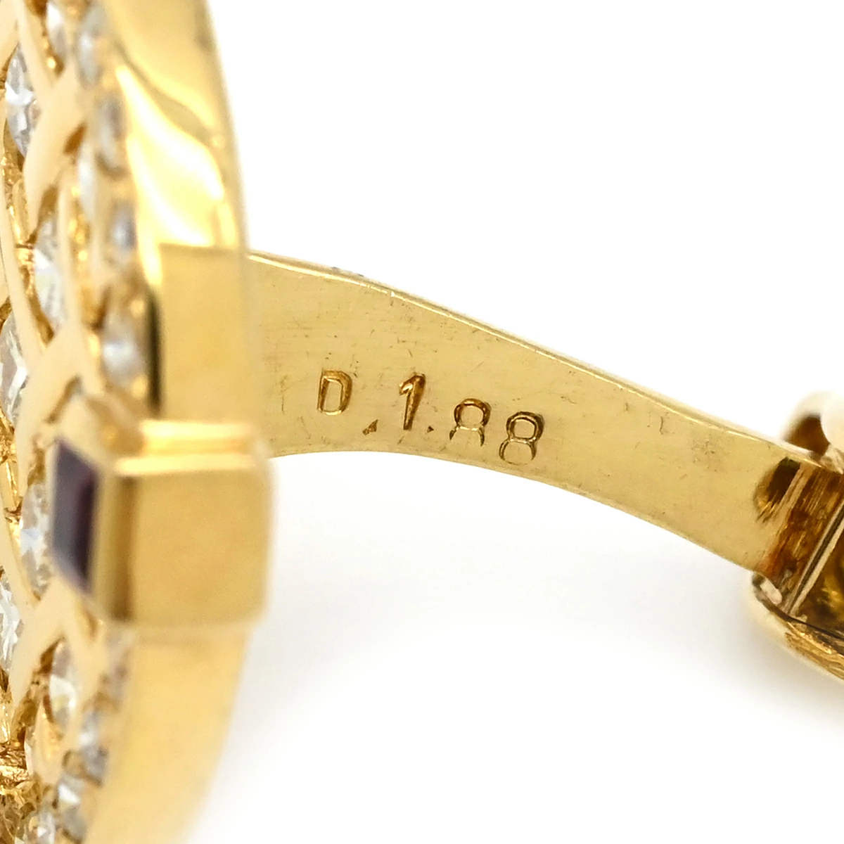 | サイズ | W(底辺)1.88cm x H(最長)1.88cm x D(最長)1.86cm ダイヤモンド:1.88ct ルビー:0.65ct ※採寸方法の詳細はこちら |