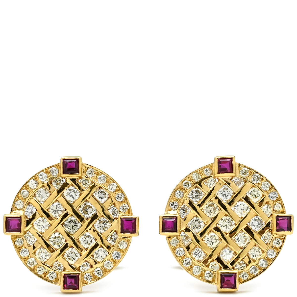 ▲クリックで拡大されますノンブランド NON BRAND カフス カフリンクス ダイヤ×ルビー K18YG ダイヤモンド ルビー イエローゴールド×シルバー Au750 18K 18金 ラウンド - メンズ 【中古】
