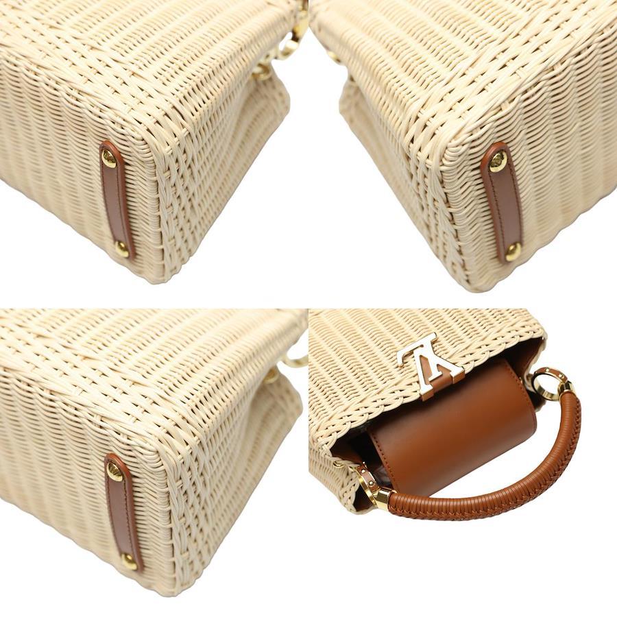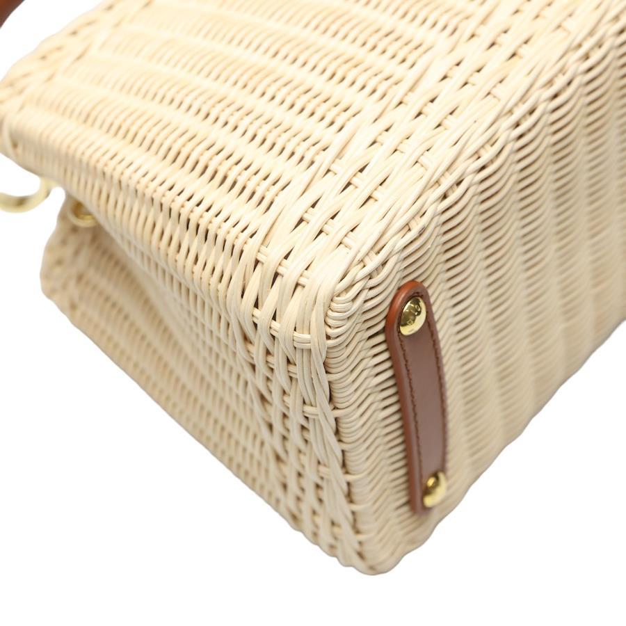 ☆手編みのラタン(トウ)を使用し、フラップとトップハンドルはカーフレザーで仕立てた「カプシーヌ BB」。取外し & 調節可能なスリムなレザーストラップでショルダーバッグとしてもクロスボディバッグとしてもお楽しみいただけます♪