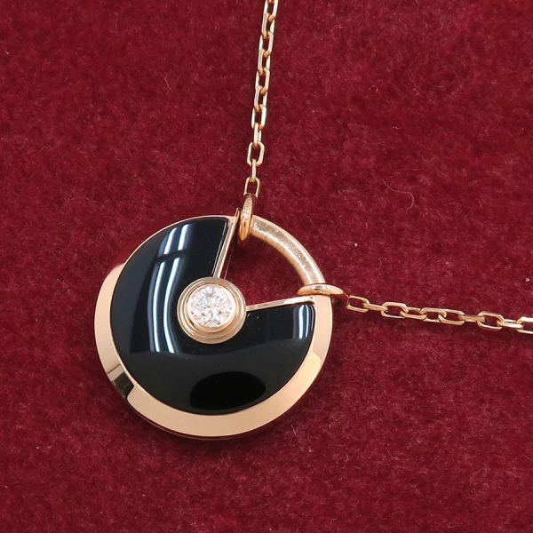 カルティエ、アミュレットドゥカルティエネックレス/SM/オニキスが入荷しました。特徴的なデザインで、一目でカルティエと分かる存在感が魅力的なネックレス。 「アミュレット」シリーズはセッティングされている宝石に様々な種類がございますが、今回はダイヤモンドとオニキスがセッティングされたオシャレなタイプになります。 存在感を主張するデザインは胸元で素敵に映えますね。 さらにバチカン部分を持ち上げるとチェーンの取り外しが出来るようになっておりますので、使い勝手も良いネックレスです。 入荷の希少な商品となりますので、是非お見逃しなく。