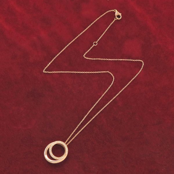カルティエより、エタンセルドゥカルティエネックレスのご紹介です☆上品でいてシャープな煌めきを放つ上質なダイヤモンドを使用した「エタンセルドゥカルティエ」シリーズのネックレス♪2重に重なったサークルモチーフのトップデザインとなっており、片方にダイヤモンドがセッティングされているタイプとなります◎非常に細かな作りのネックレレスとなり、カルティエの存在感を存分に感じられる豪華な商品となります♪裏側に若干のダメージがあるためBランクでのご紹介ですが、その分非常にお買い得となっております◎入荷の珍しいアイテムですので、気になった方は是非この機会をお見逃し無く☆
