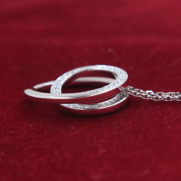 カルティエより、エタンセルドゥカルティエネックレスのご紹介です☆上品でいてシャープな煌めきを放つ上質なダイヤモンドを使用した「エタンセルドゥカルティエ」シリーズのネックレス♪2重に重なったサークルモチーフのトップデザインとなっており、片方にダイヤモンドがセッティングされているタイプとなります◎非常に細かな作りのネックレレスとなり、カルティエの存在感を存分に感じられる豪華な商品となります♪入荷の珍しいアイテムですので、気になった方は是非この機会をお見逃し無く☆