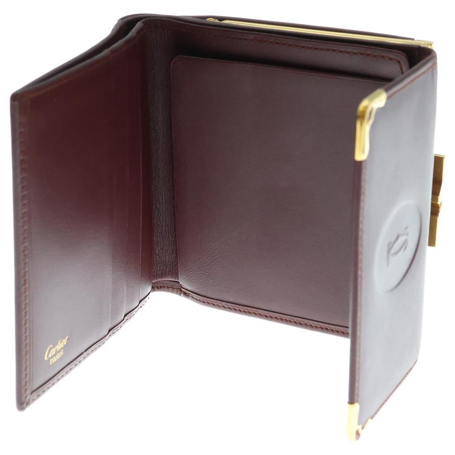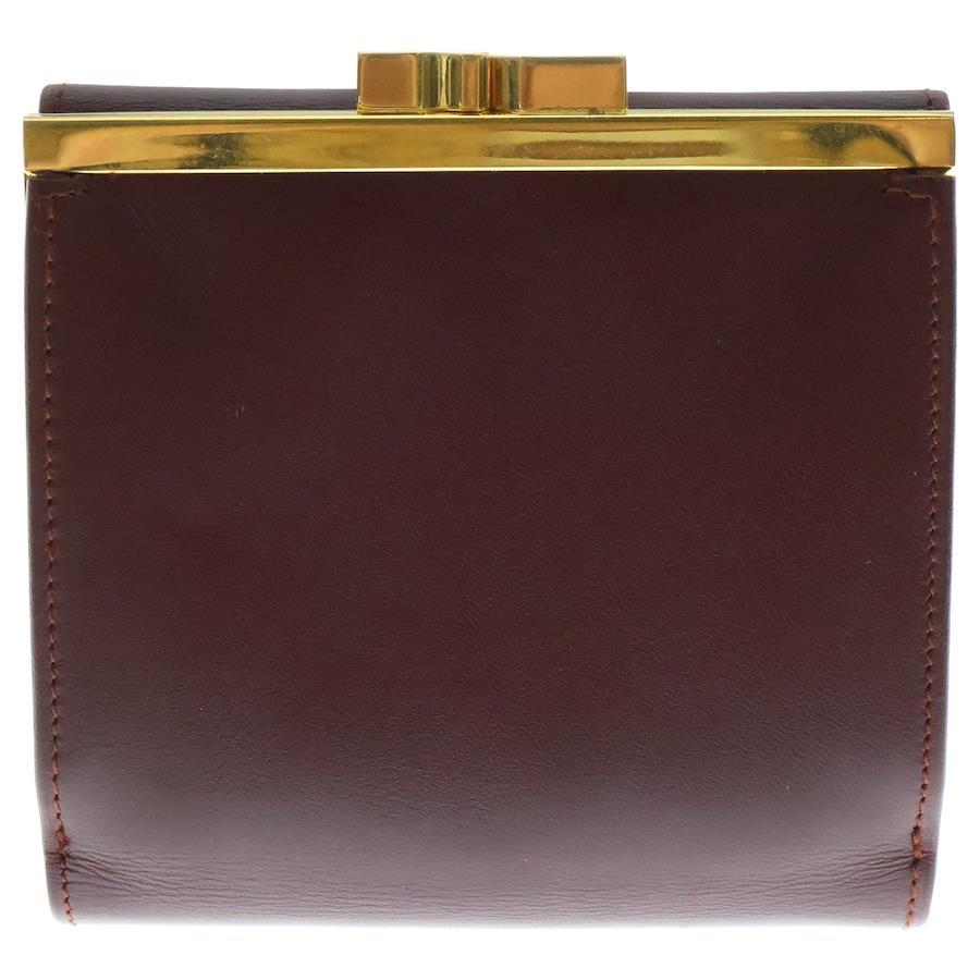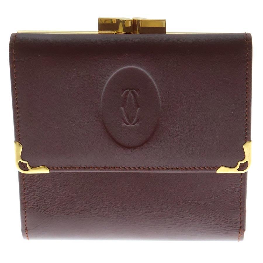 [モデル]エンボスロゴ カーフレザー がま口 コンパクトウォレット 二つ折り財布 ゴールド金具 ボルドー 〇