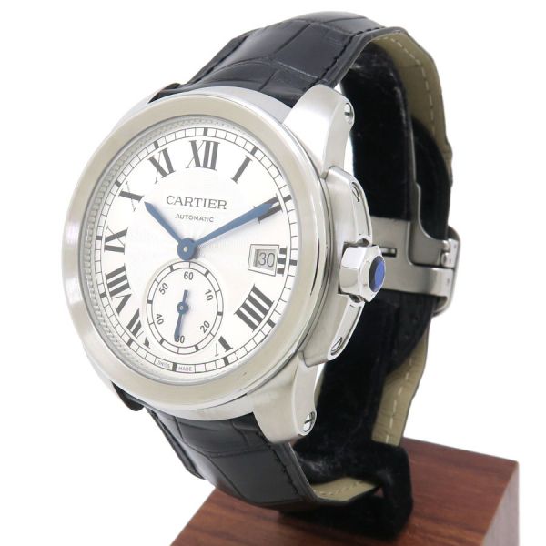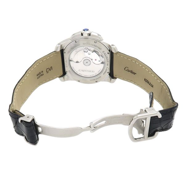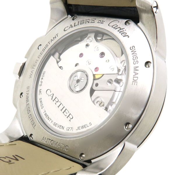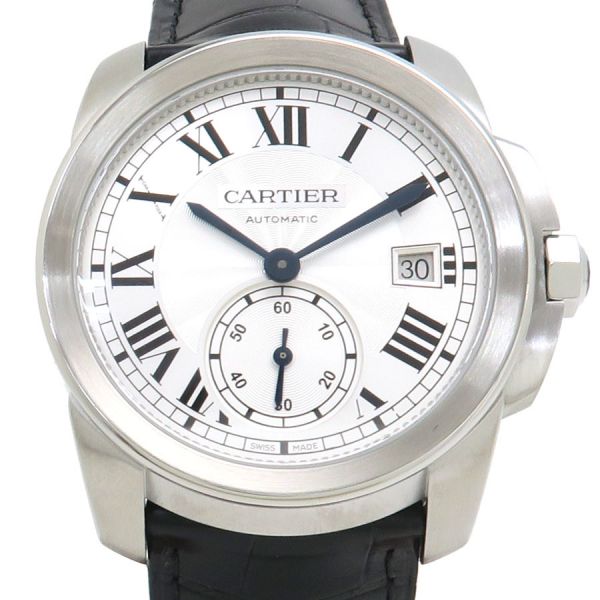 カルティエの人気モデル、「カリブルドゥカルティエ」が入荷致しました。 自社社製キャリバー自動巻きムーヴメント1904-PSMC搭載を搭載しています。白文字盤の3時位置にデイト表示、6時位置にスモールセコンド。裏側はシースルーバックのため美しい機構を堪能するこが出来ます。当社提携の時計修理工房にて外装の新品仕上げとオーバーホールを行っております。ベゼル全体に小傷、裏蓋SS部分に擦れ、純正革ベルトに擦れやクセがございます。カルティエの人気モデル カリブルドゥカルティエをお見逃し無く。