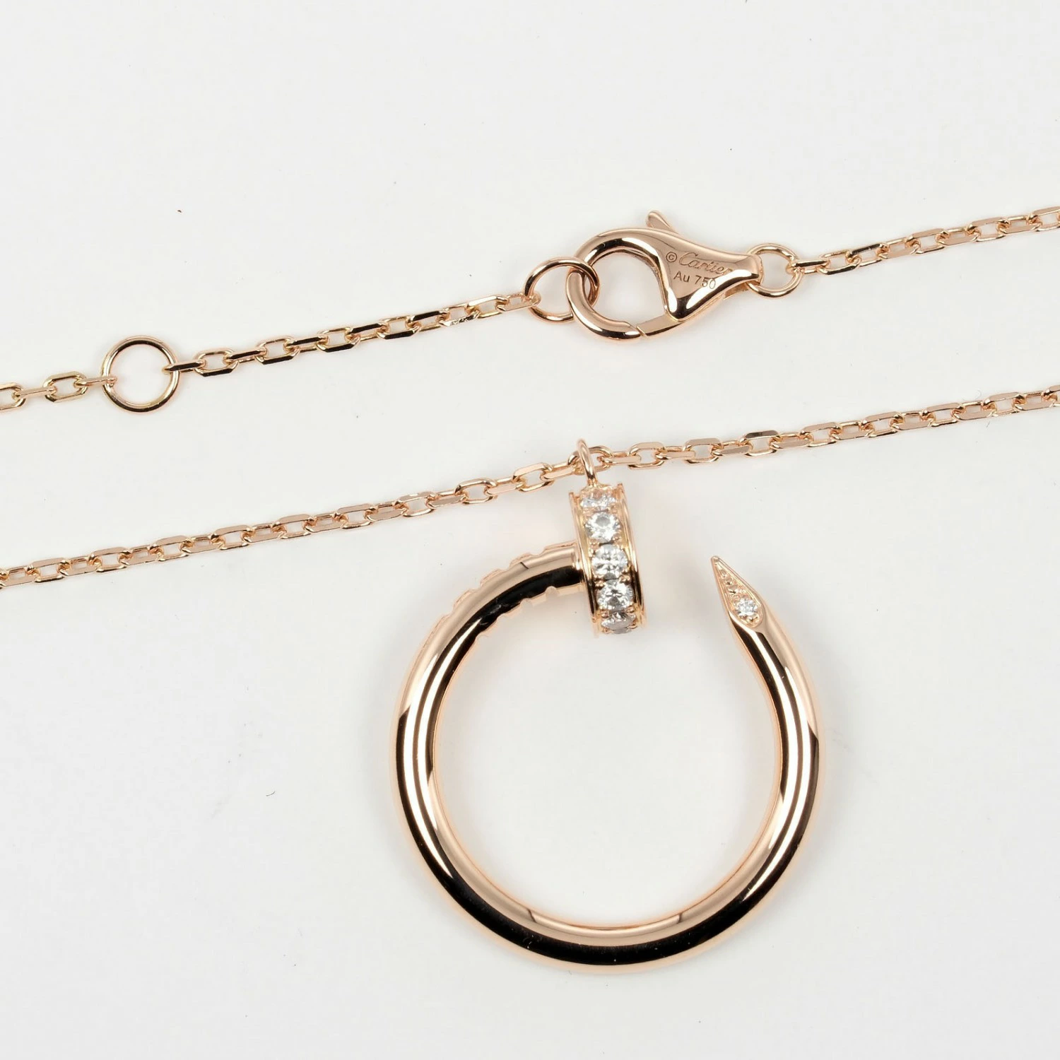 Cartier Juste un Clou necklace in 18K pink gold with diamonds, approximately 5.66g. Pre-owned, A-rank.