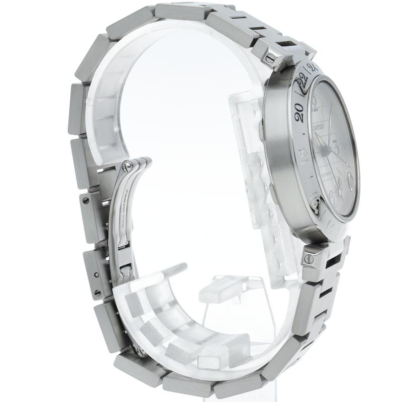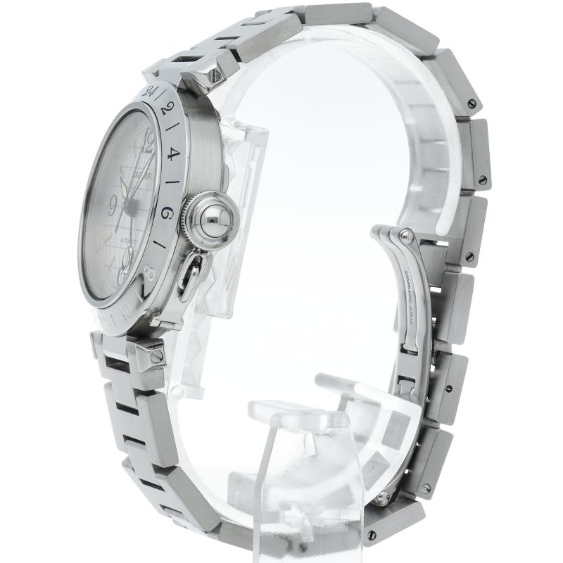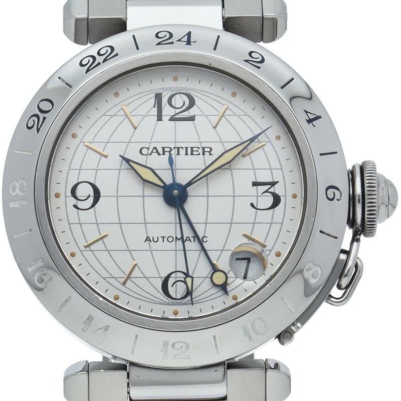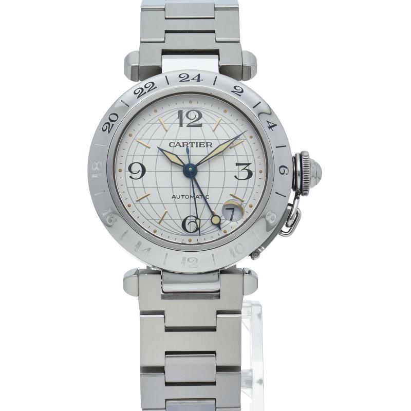 商品説明:カルティエの人気「パシャC」シリーズ。文字盤に地球儀をモチーフにした放射線状のデザインを持つ、GMT機能搭載モデル。