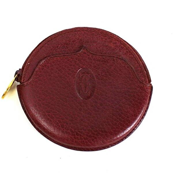 カルティエ マストドゥカルティエ コインケース 丸形 レザー ボルドー 中古 ABランク Cartier|メンズ レディース 男女兼用 小銭入れ 財布 小物入れ