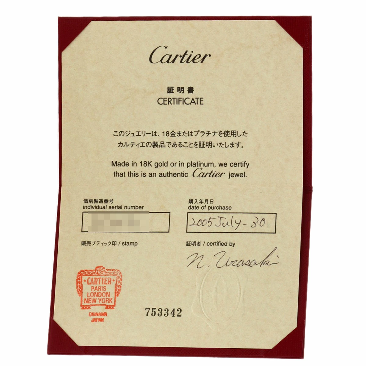 | 付属品 | カルティエ保証書 |