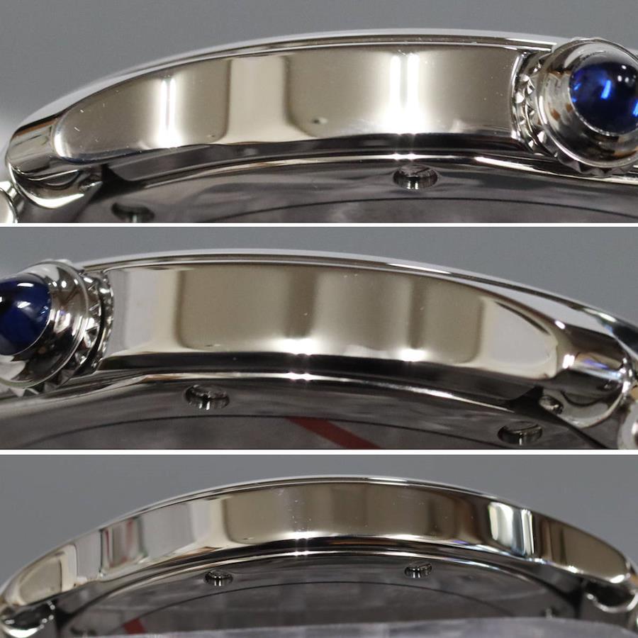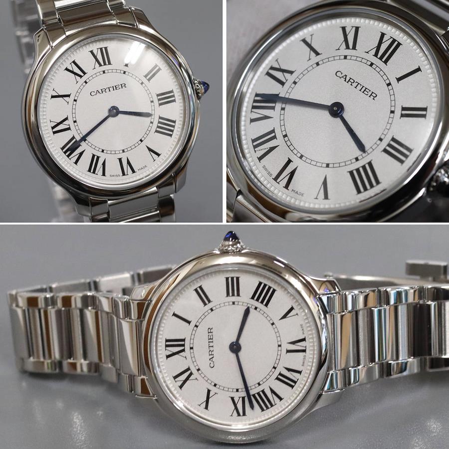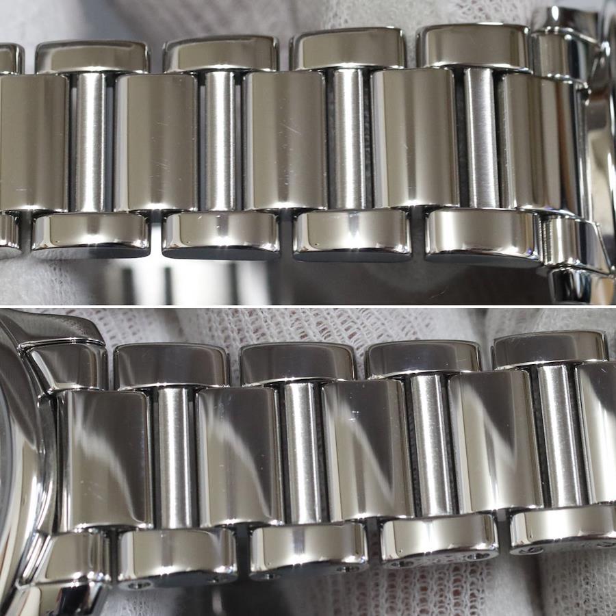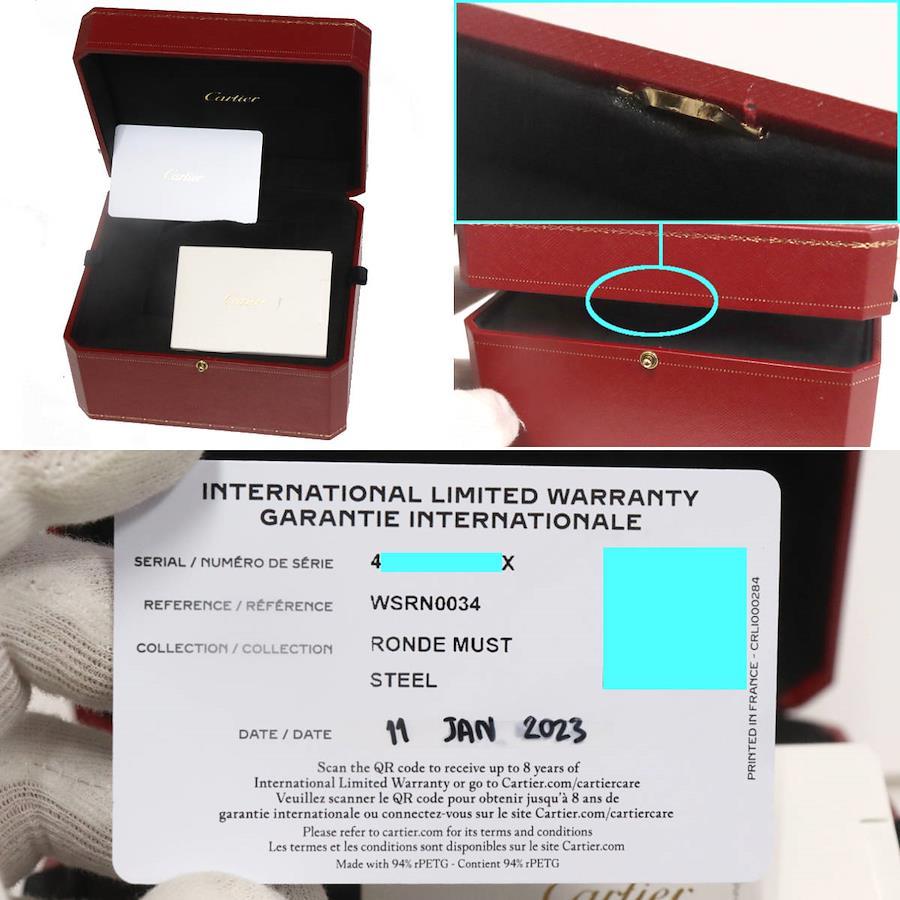 カルティエのメンズウォッチ、ロンド マスト ドゥ カルティエ(WSRN0034)の中古品です。当店の提携工房にて研磨仕上げを行っています。ケース ベルトにわずかに小傷があります。内箱は破損しており、蓋が閉まりません。保証書が付属し、記載の購入日は2023年1月11日です。2026年1月に電池交換を行っています。付属品は以下の通りです。内箱(閉まらない)保証書+---+---+---+---+---+。{状態}ケースAベルトA{素材}ケースSSベルトSS{サイズ} ケース:約36mm ,ストラップ:約17.5cm。{ムーブメント}クォーツ{その他}92.2g日常生活防水。{付属品}内箱,保証書{お問合せ商品番号}25106029+---+---+---+---+---+。