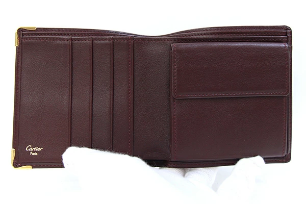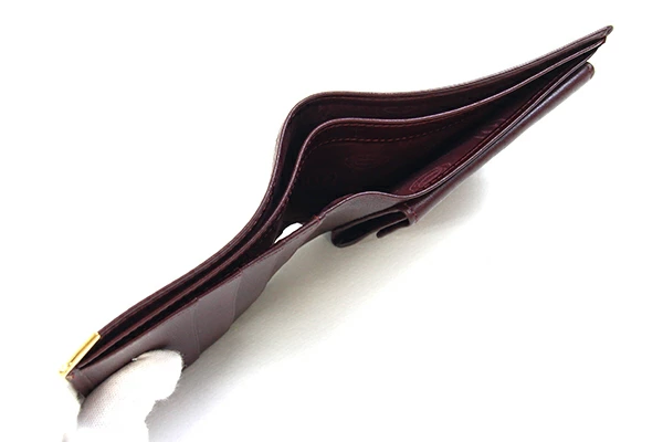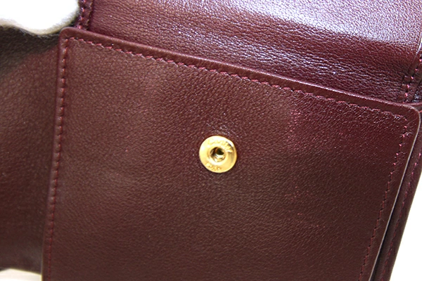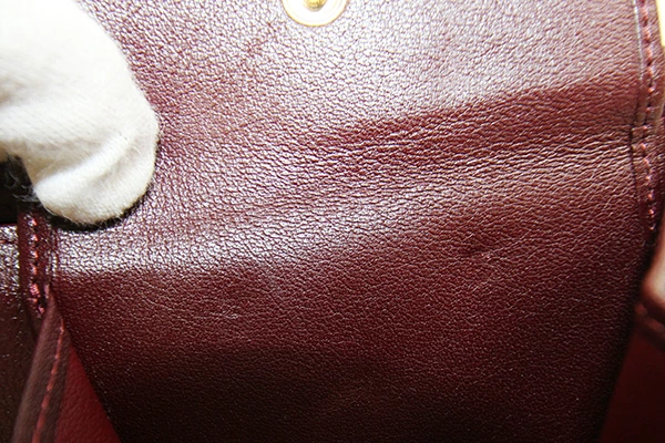| 状態 | 外側:若干革馴染み・型崩れ、所々薄キズあり。 内側:小銭入れ部分にスレあり。小銭入れ内薄キズ、薄汚れあり。 金具:薄キズあり。 |