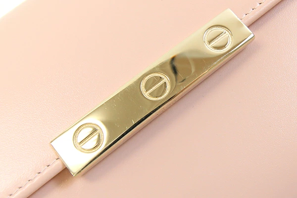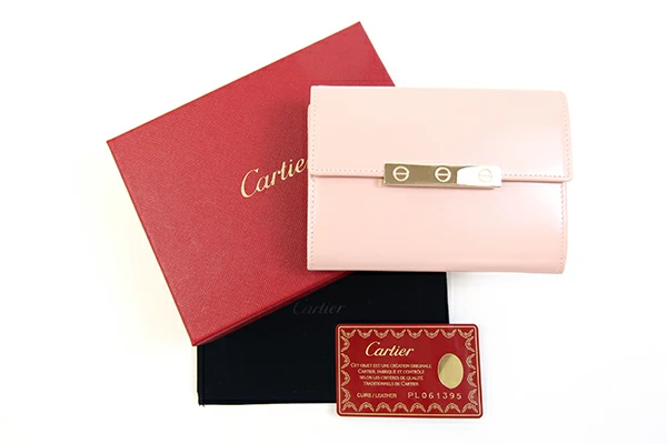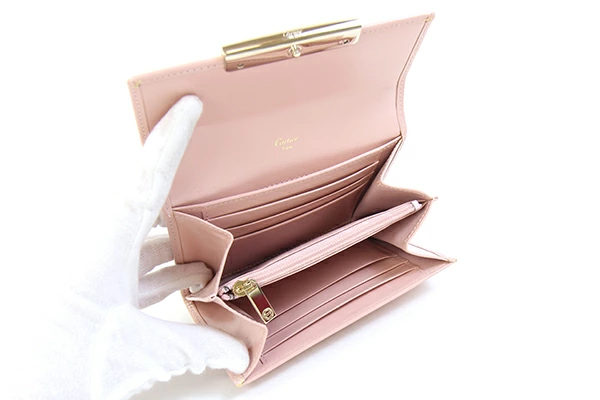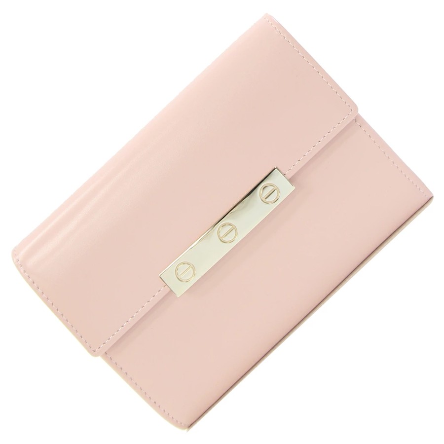 Cartier Bi-fold Wallet, Love Collection, L3000747, Light Pink Leather, Used, Compact Wallet, Coin Purse, Women's, LOVE Collection, Cartier