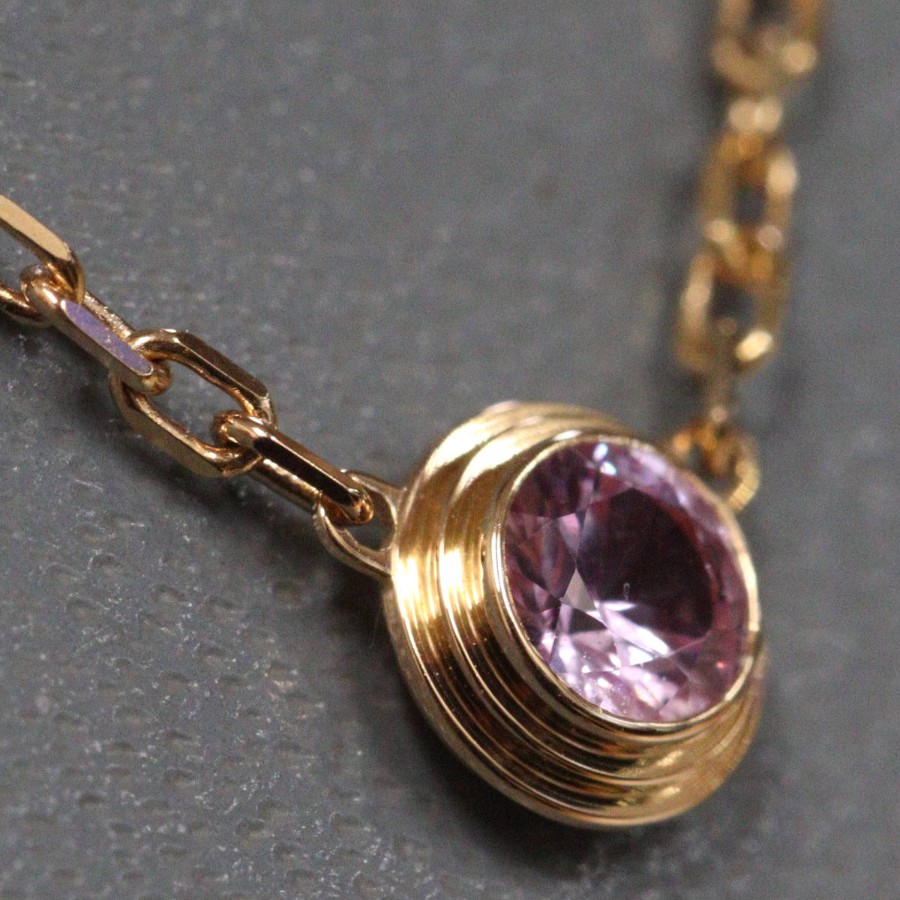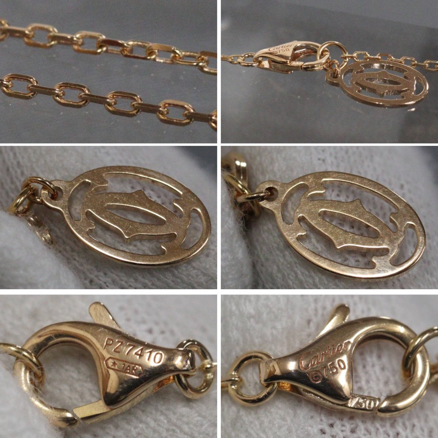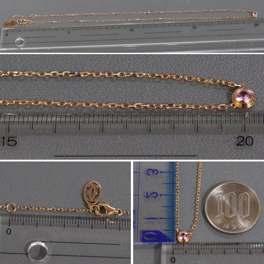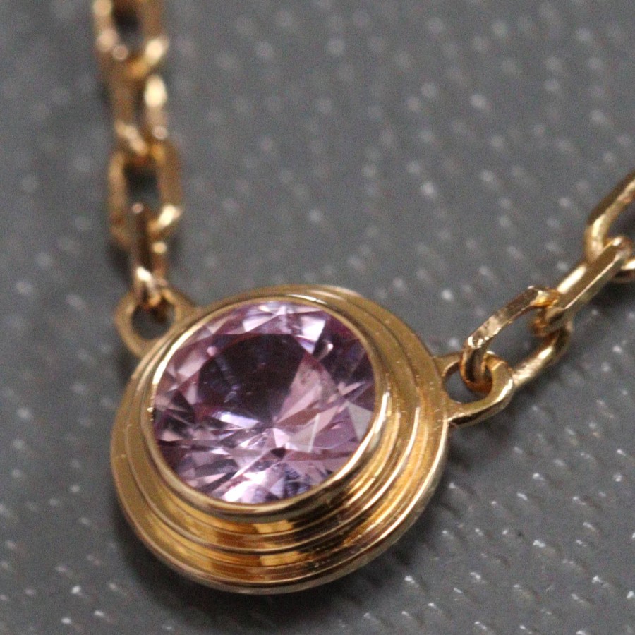 カルティエの750PG ダムール ネックレス ピンクサファイア 2.8g 40cm(B7218400)の中古品です。肉眼ではわかりませんが、ピンクサファイアのテーブル端に欠けがあり、ややインクルージョンがあります。(写真5枚目)地金にはわずかに小傷があります。保証書が付属し、記載の購入日は2010年12月19日です。+---+---+---+---+---+。{状態}AB{素材}トップAu750(K18PG),ピンクサファイアチェーンAu750(K18PG){サイズ}トップ約W5mm × 5mm。チェーン長約38cm,40cm。{その他}2.8g約38cm,40cmの二段階調整。{付属品}内外箱,保証書{お問合せ商品番号}26036068+---+---+---+---+---+。