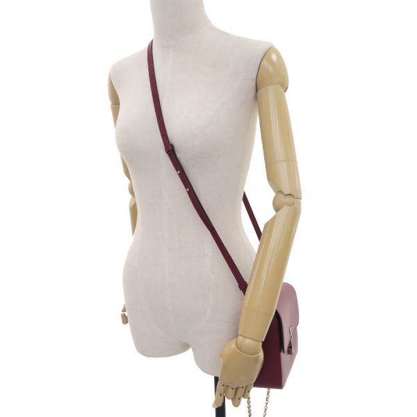 カルティエのC ドゥ カルティエ チェーンバッグ スモールのご紹介です!チェーン、又は取り外し可能のショルダーストラップでお使い頂ける2WAYバッグで、フラップの先端に付いている2Cマークの金具で開閉、背面にポケット1つ、中はファスナーポケットが1つ、スリットが1つと、付属のミラープレートが入るミニポケットが1つあります。ショルダーストラップは両端にフックがあり、4段階長さ調節可。☆本体の型崩れが少々、表面の薄汚れ・スレ・シワ、角や縁のスレ、側面のDリング周りの押し跡・黒ずみ・スレ、ショルダーのクセつき、付属ミラーの小傷、金具の小傷・くすみが見受けられますが、きれい目なコンディションですよ!!いかがですか!