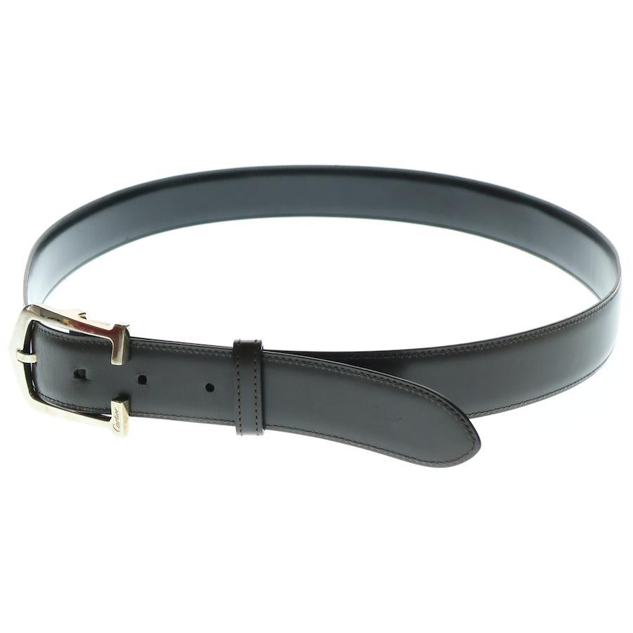 Cartier C Alonger Leather Belt with Silver Buckle, Reversible, Black/Brown - Black/Brown