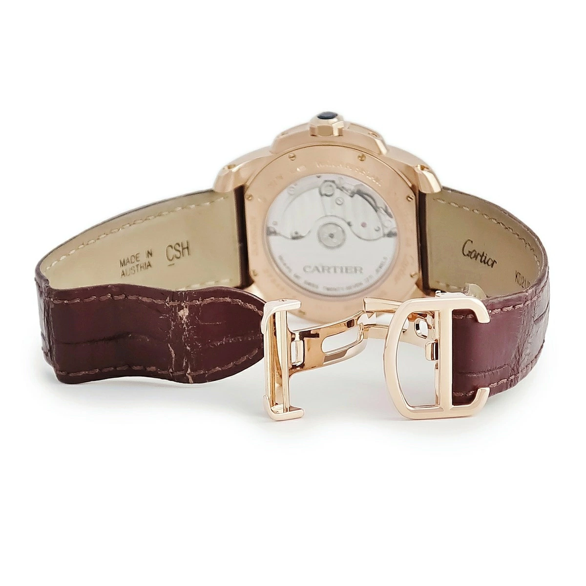 Cartier Calibre de Cartier 38mm WGCA0003 Men's Automatic Watch in 18K Solid Gold with Small Seconds, Date, and Blue Hands (Pre-owned)