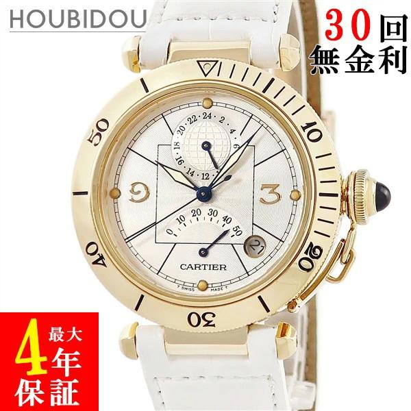 カルティエ Cartier パシャ 38mm GMT パワーリザーブ W3014456 OH済 K18YG無垢 デイト トリチウム メンズ 腕時計自動巻き ホワイト 【中古】【店頭受取不可】