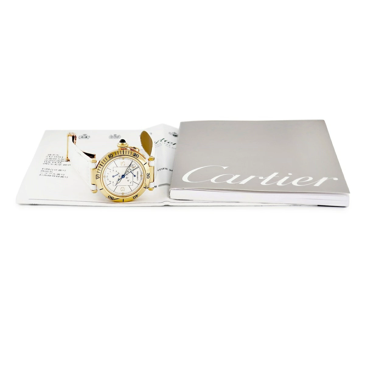 Pre-owned Cartier Pasha 38mm GMT Power Reserve W3014456, 18K Yellow Gold, Date, Tritium Movement, Automatic, White, Men's Watch, Overhauled