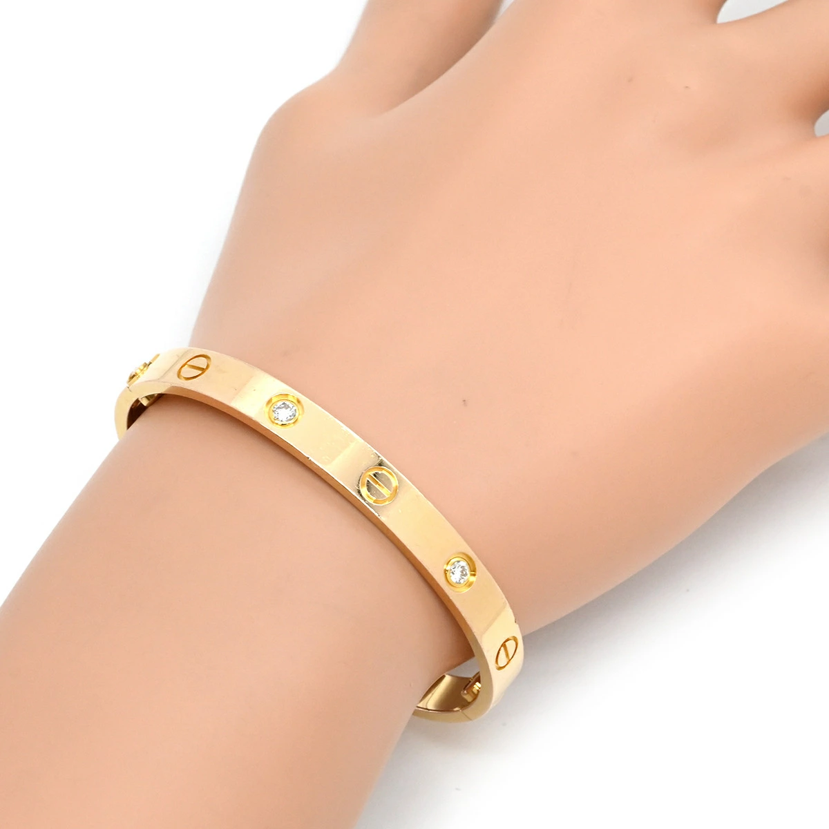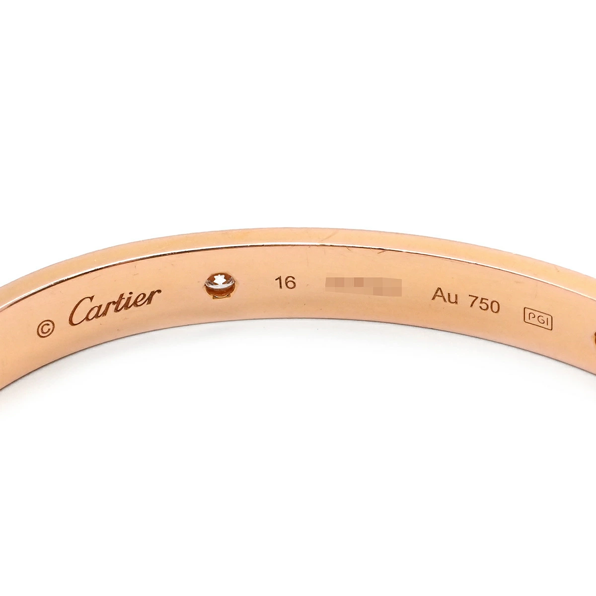 ▲クリックで拡大されますカルティエ Cartier ブレスレット LOVE ラブブレス ハーフダイヤ ラブ K18PG ダイヤモンド ピンクゴールド Au750 18K 18金 4P 4石 4粒 現行モデル B6036016 #16 レディース 【中古】