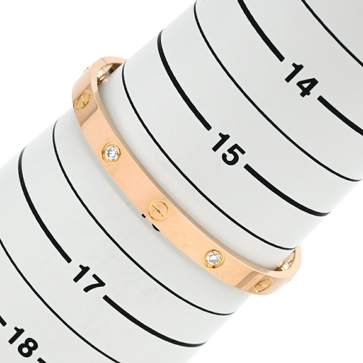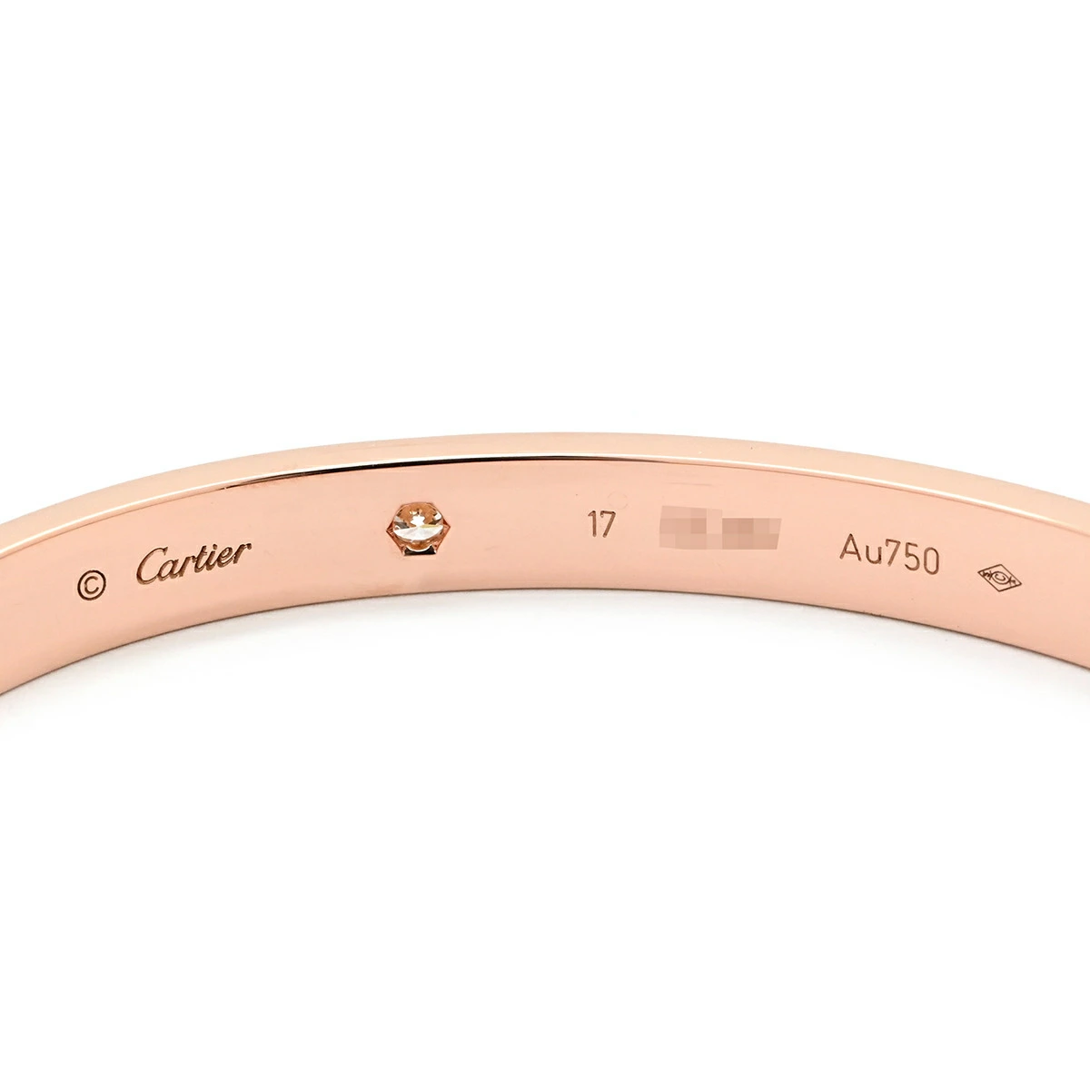 カルティエ Cartier ブレスレット LOVE ラブブレス ラブ K18PG ダイヤモンド ピンクゴールド ピンクゴールド PG Au750 18K 18金 ハーフダイヤ 4P 4石 4粒 旧型 - #17 レディース 【箱】定番 人気 美品 【中古】 管理コード240500521697 全体コンディション詳細: メーカーにて新品仕上げ済みですので全体的に非常に綺麗です。※全ての傷や汚れをお取りすることが出来ない場合もございます。 刻印が薄くならない程度までのお磨きですので多少の使用感は予めご了承下さいませ。 コンディション詳細:新品同様品 磨ききれない微細な擦れや小傷がございます。