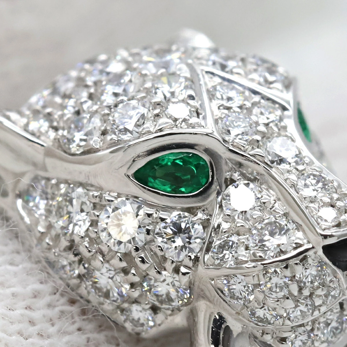 カルティエ Cartier リング 指輪 パンテール ドゥ カルティエ パンテール K18WG ダイヤモンド エメラルド オニキス ホワイトゴールド パンサー 750 18K - 13.5号 #54 レディース 【修理証明書】定番 人気 美品 【中古】 管理コード240500503680 全体コンディション詳細: ほとんどご使用されておらず全体的に非常に綺麗なお品です。※画像、コメント欄参照 コンディション詳細:新品同様品 微細な擦れや小傷がございます。