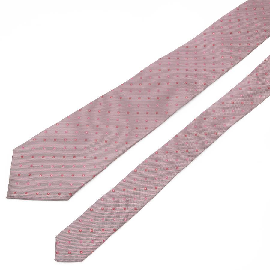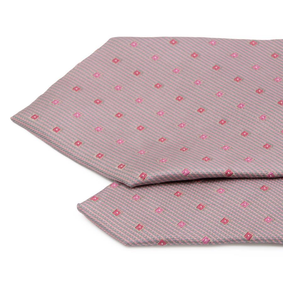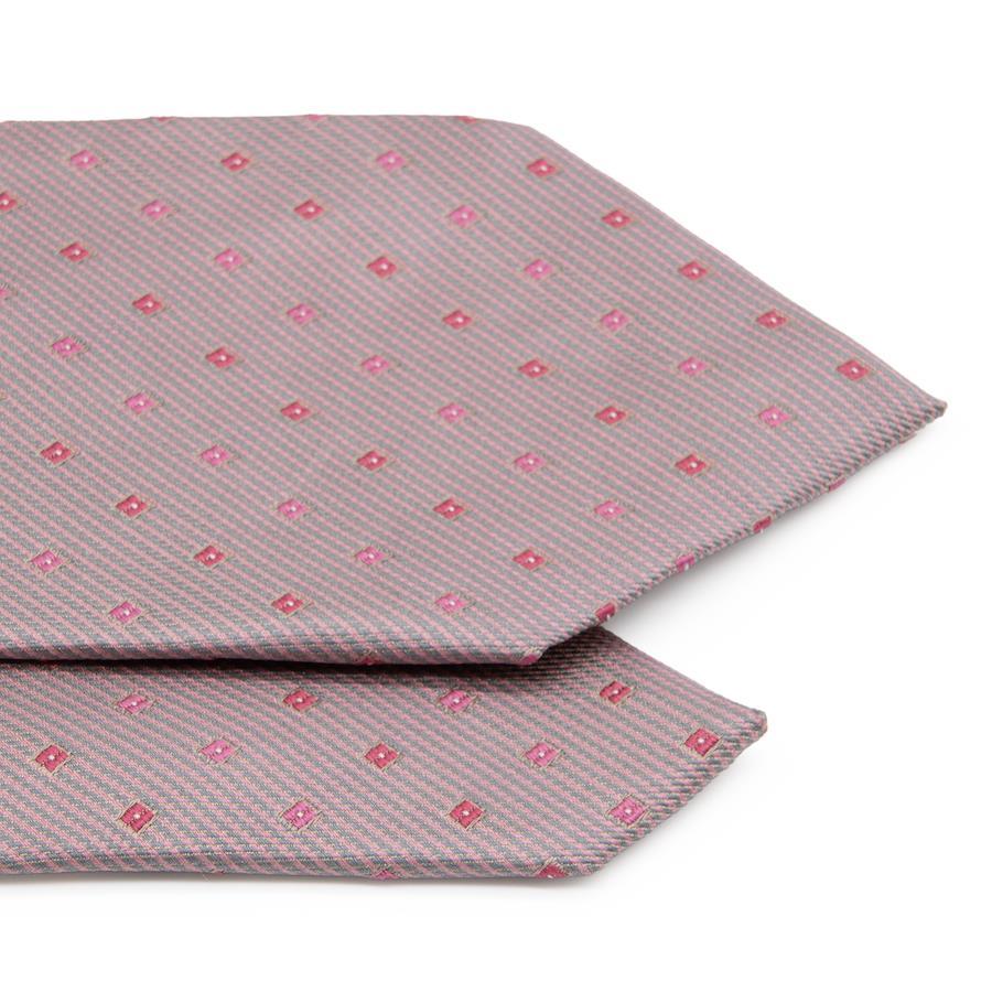 上品な光沢を放つ、シルバーピンクの地に、小さなスクエアドットがリズミカルに配置された、大変お洒落な一本です。