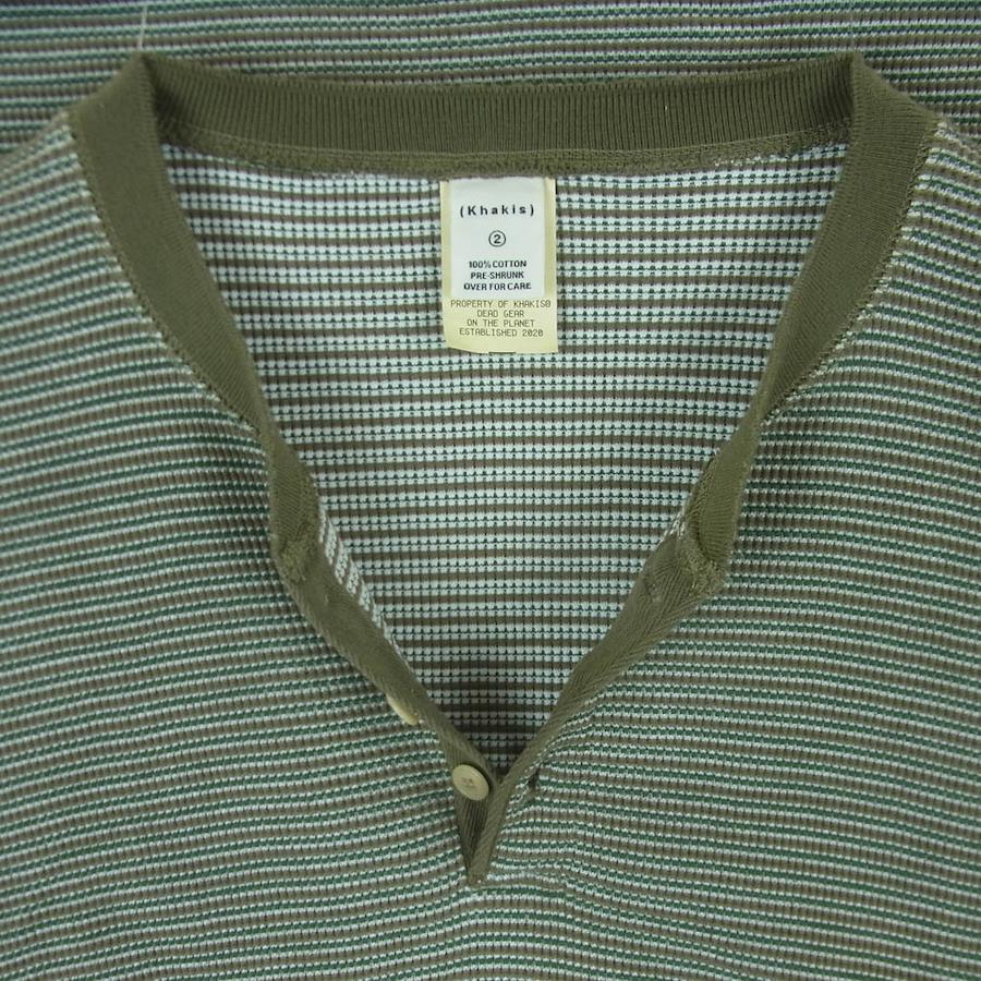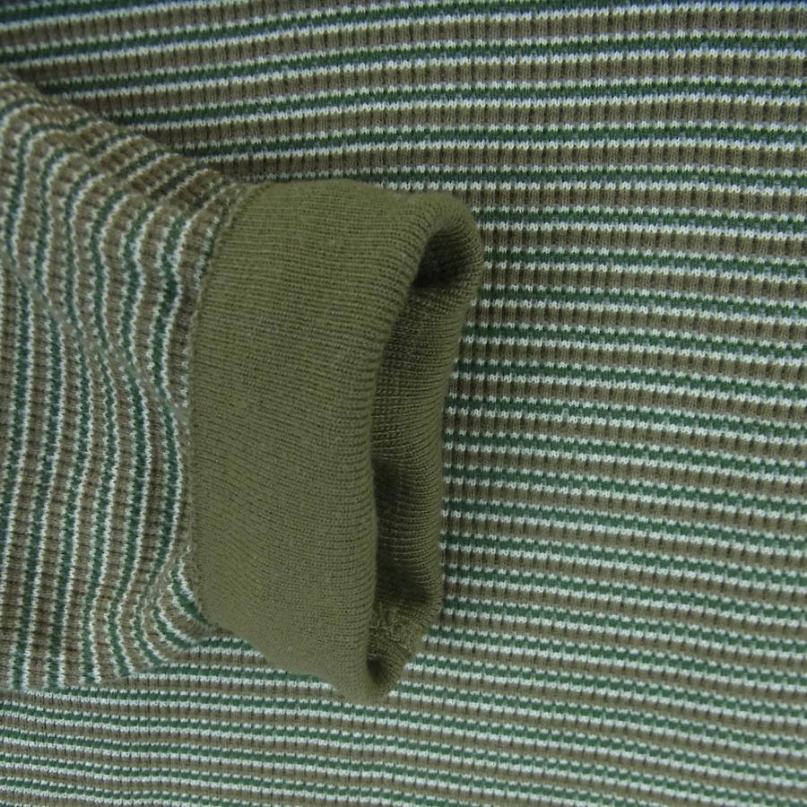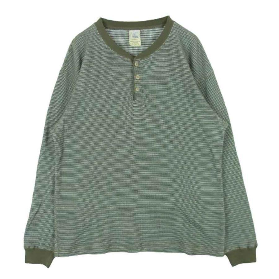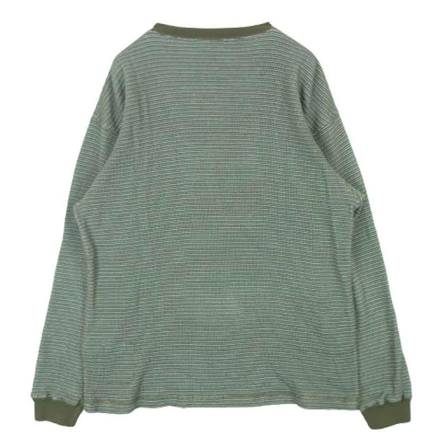 グリーン系 x カーキ系【モデル】1LDK WAFFLE HENLEY L/S TEE ワッフル ヘンリー ボーダー 長袖 Tシャツ