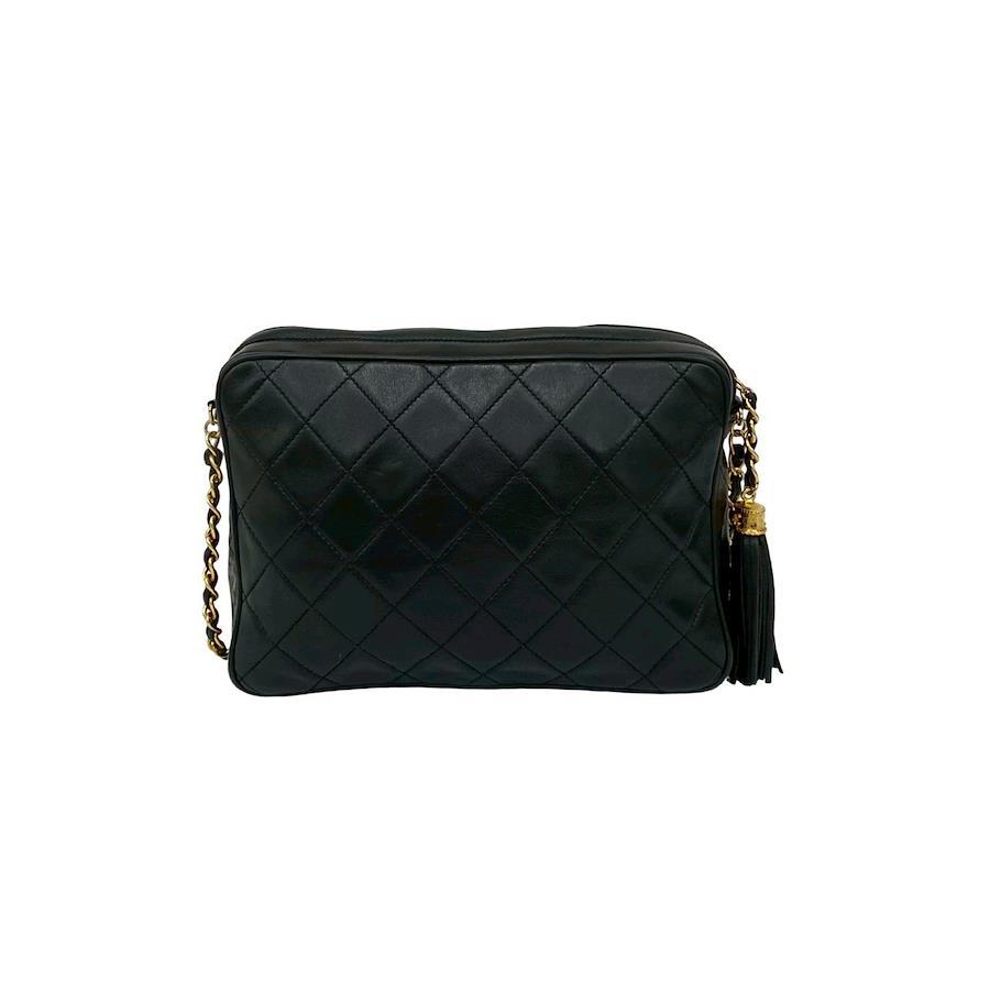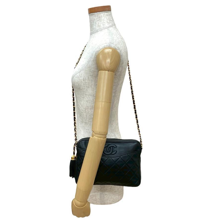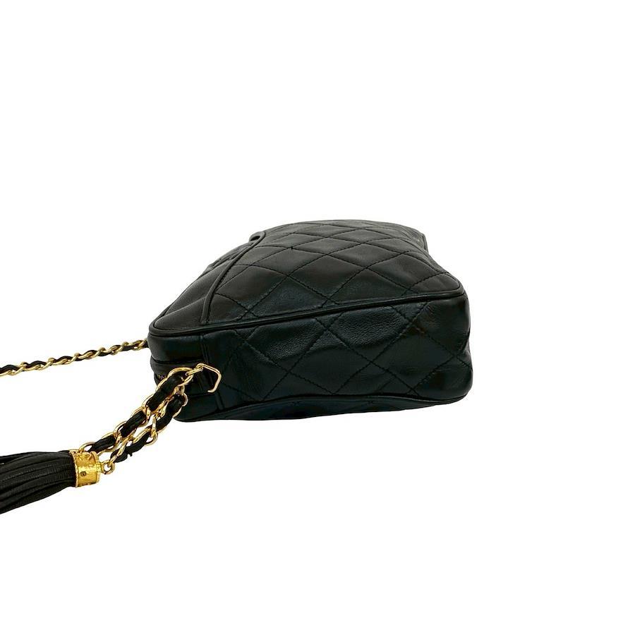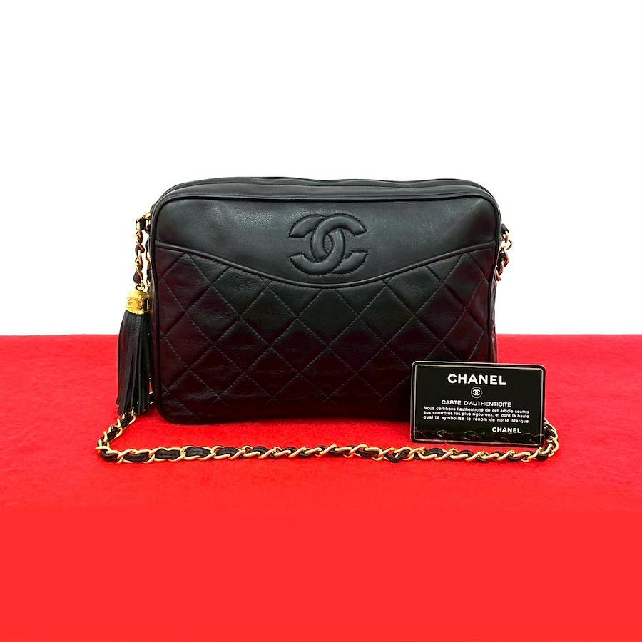 CHANEL Matelasse Coco Mark Tassel Lambskin Chain Shoulder Bag in Black (35861) with Card and Sticker