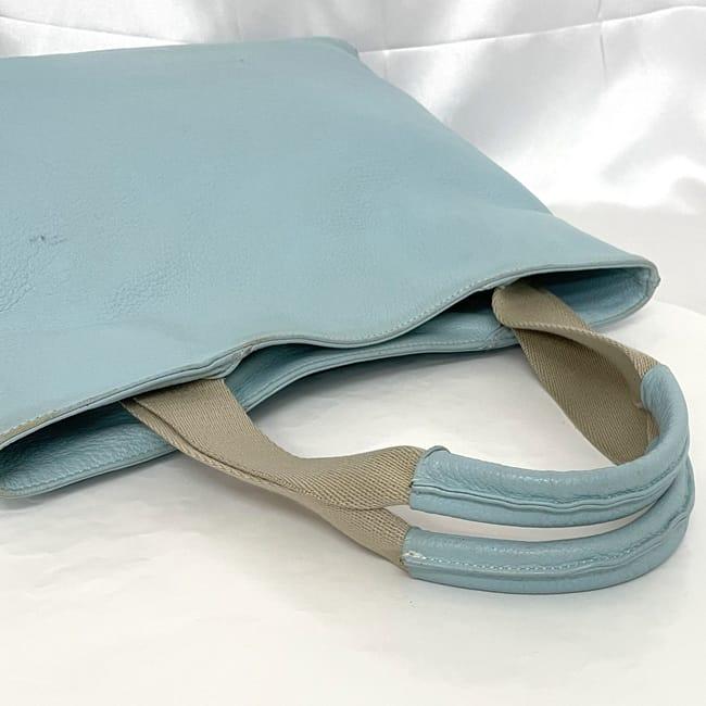 キタムラ トートバッグ ec-22684 ライトブルー 大容量 レザー 中古 Kitamura ロゴ 軽い ファスナー シンプル ワンポイント 定番 人気 トート 女性 レディース 革 青色 お洒落 通勤 通学 仕事 ビジネス 水色 エレガント 鞄 高級感 上品 ブランド 本物 鑑定済み