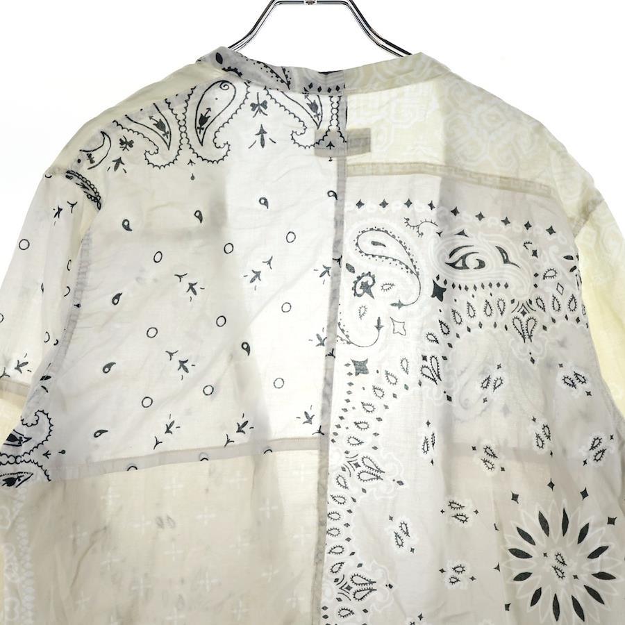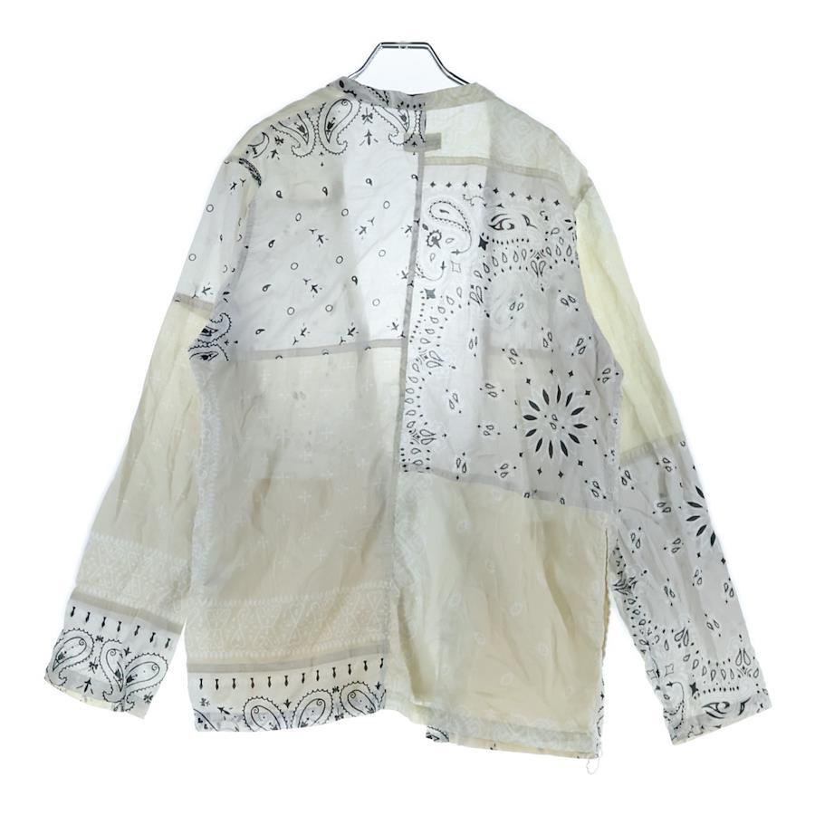 [モデル]19SS ペイズリーバンダナパッチワークシャツ ノーカラー長袖シャツ K1904LS078 ホワイト