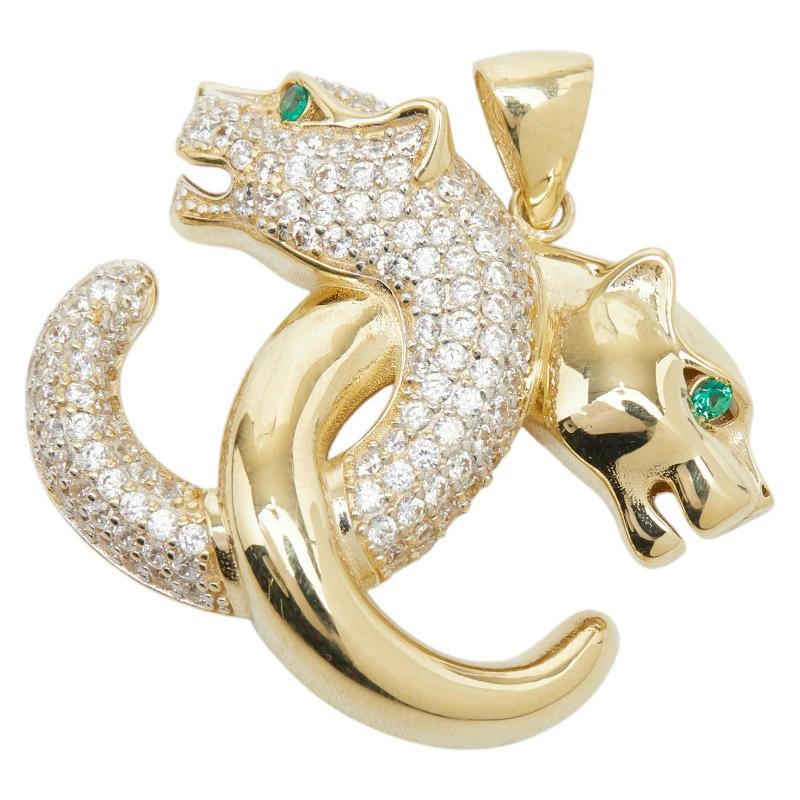- キュービック・ジルコニア K18YG イエローゴールド キュービックジルコニア CCクロス パンサーモチーフ ペンダントトップ ネックレス レディース 【中古】