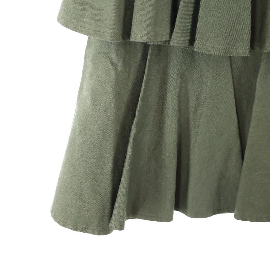 [モデル]ティアード フレア コットン ロングスカート カーキ レディース 14109‐6051