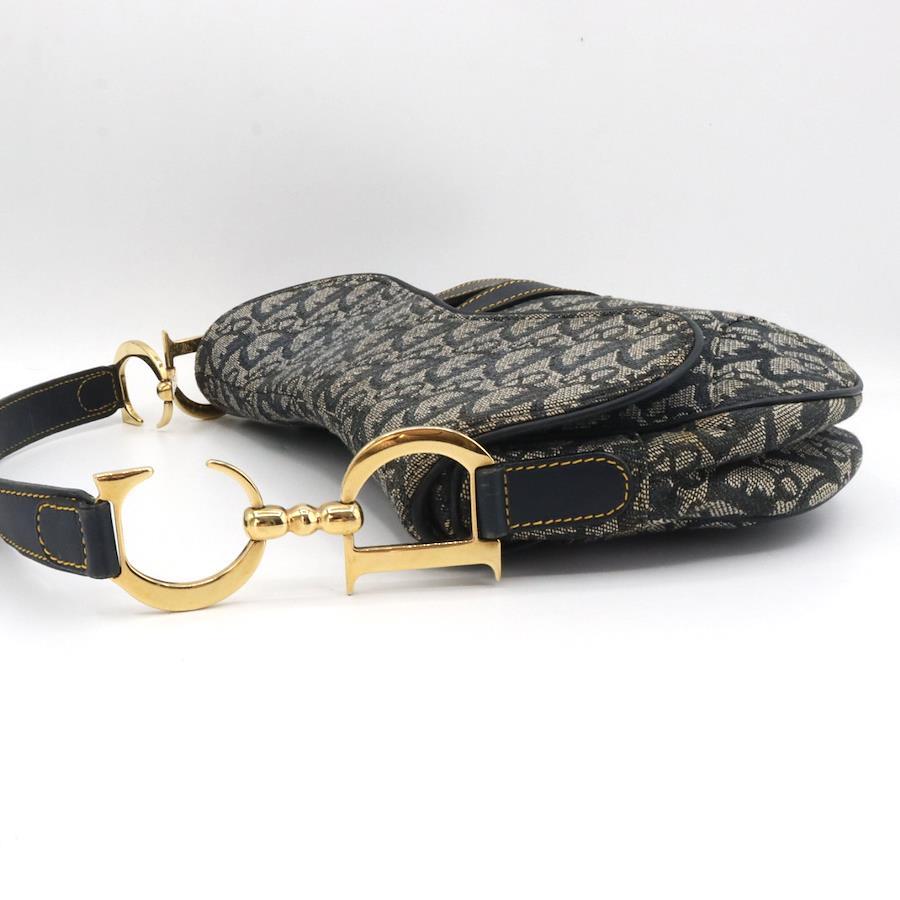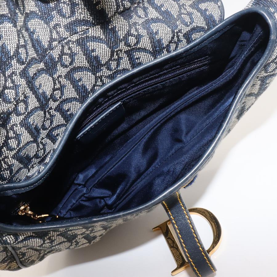 Christian Dior 海軍藍帆布馬鞍肩背包